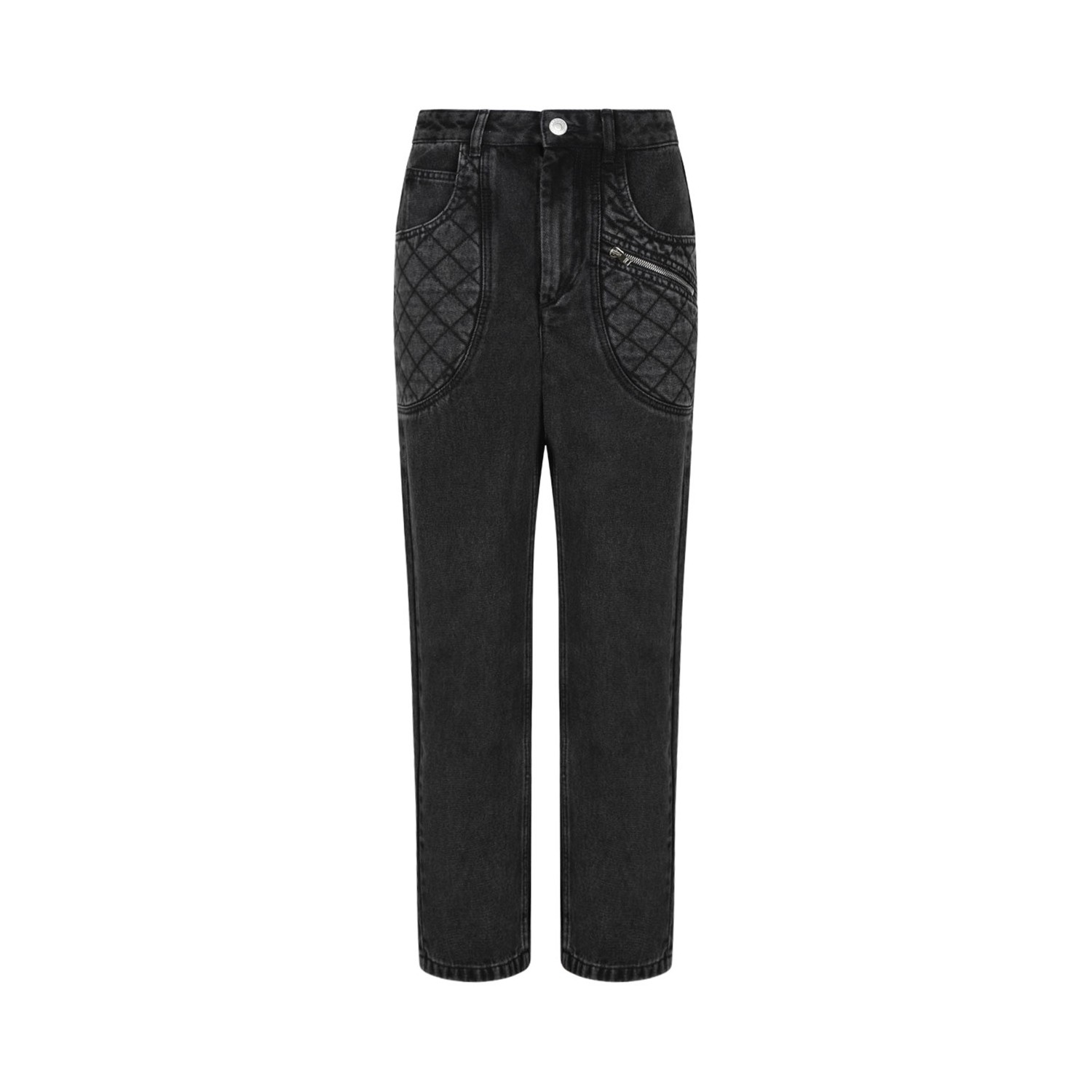 Isabel Marant Cassandre Wide Leg Jeans. Dark grey denim jeans, faded effect. decorative stitching, logo patch to the rear. High rise, belt loops, concealed fly and button fastening, classic five pockets, straight cropped leg.