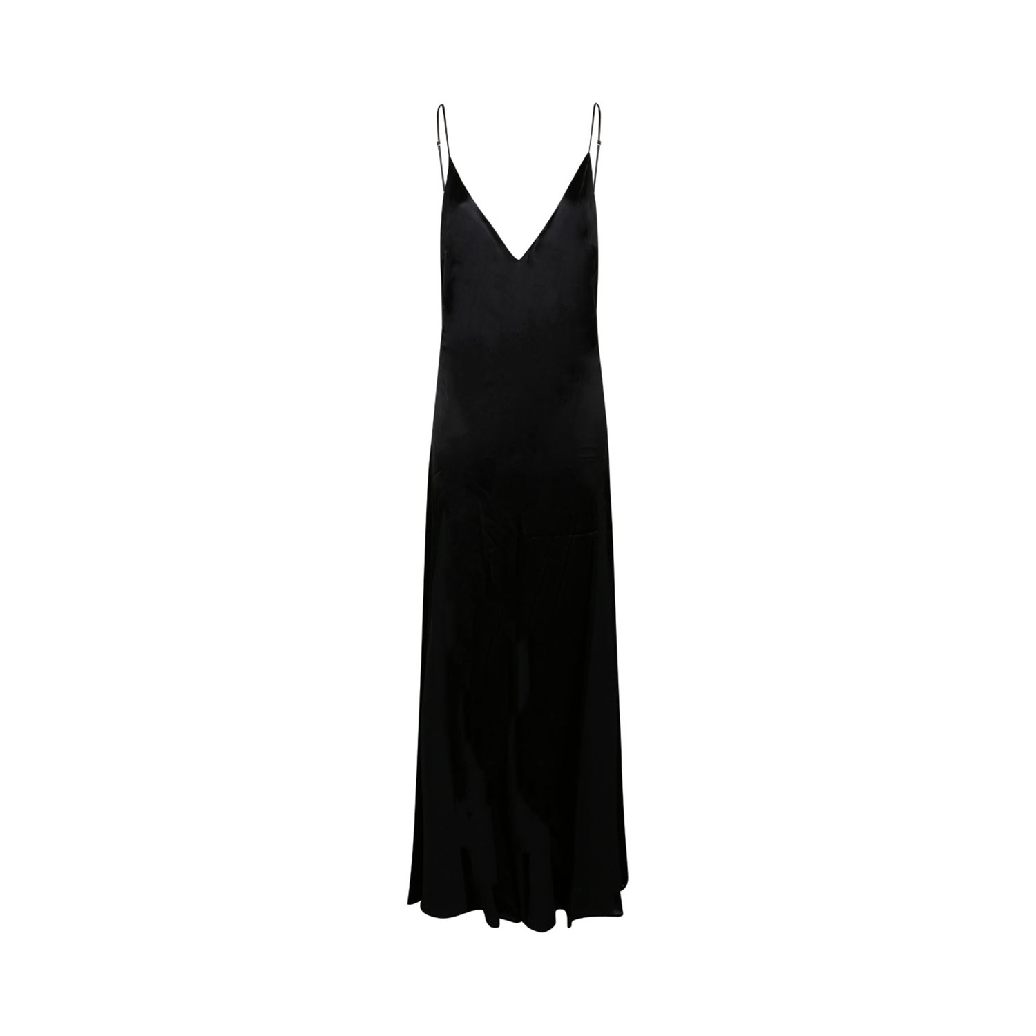 Elisabetta Franchi Stretch Silk Satin Black Dress with V-neck and deep back neckline. It features a skirt that opens at the bottom by means of georgette inserts that give breadth and volume.Adjustable straps and invisible back zipper.