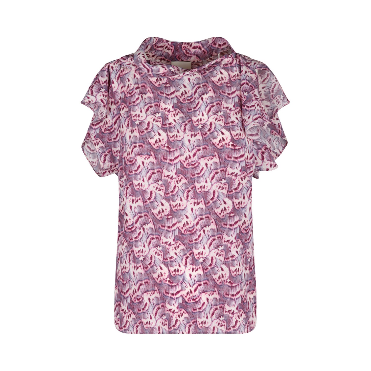 Isabel Marant Mauve Valency Top. Mauve silk top, short sleeves, asymmetric sleeves, ruffles on the sleeves.