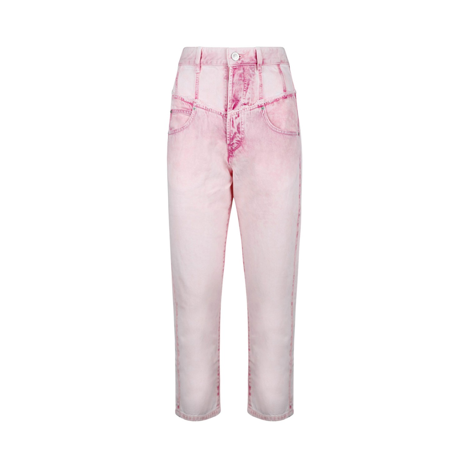 Isabel Marant Oliviani Pink Denim with regular waist, soft flared cut with patchwork. Jacron at the back. Five pockets.