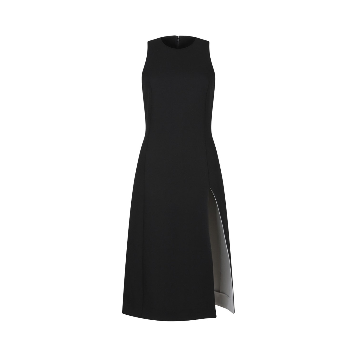 AMI Black Midi Dress. Black virgin wool midi dress, crew neck, concealed rear zip fastening, sleeveless. Side slit, knee length and straight hem.