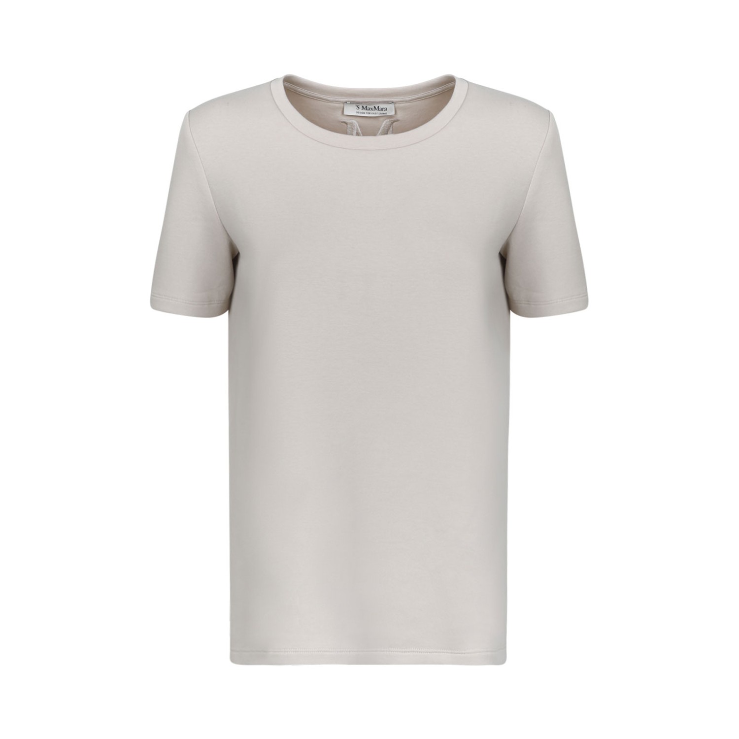 Max Mara Ecru T-Shirt. Ecru echnical cotton scuba jersey t-shirt, crewneck, short sleeves. Basic model finished with M Monogram logo embroidered in thread on the back of the neck.