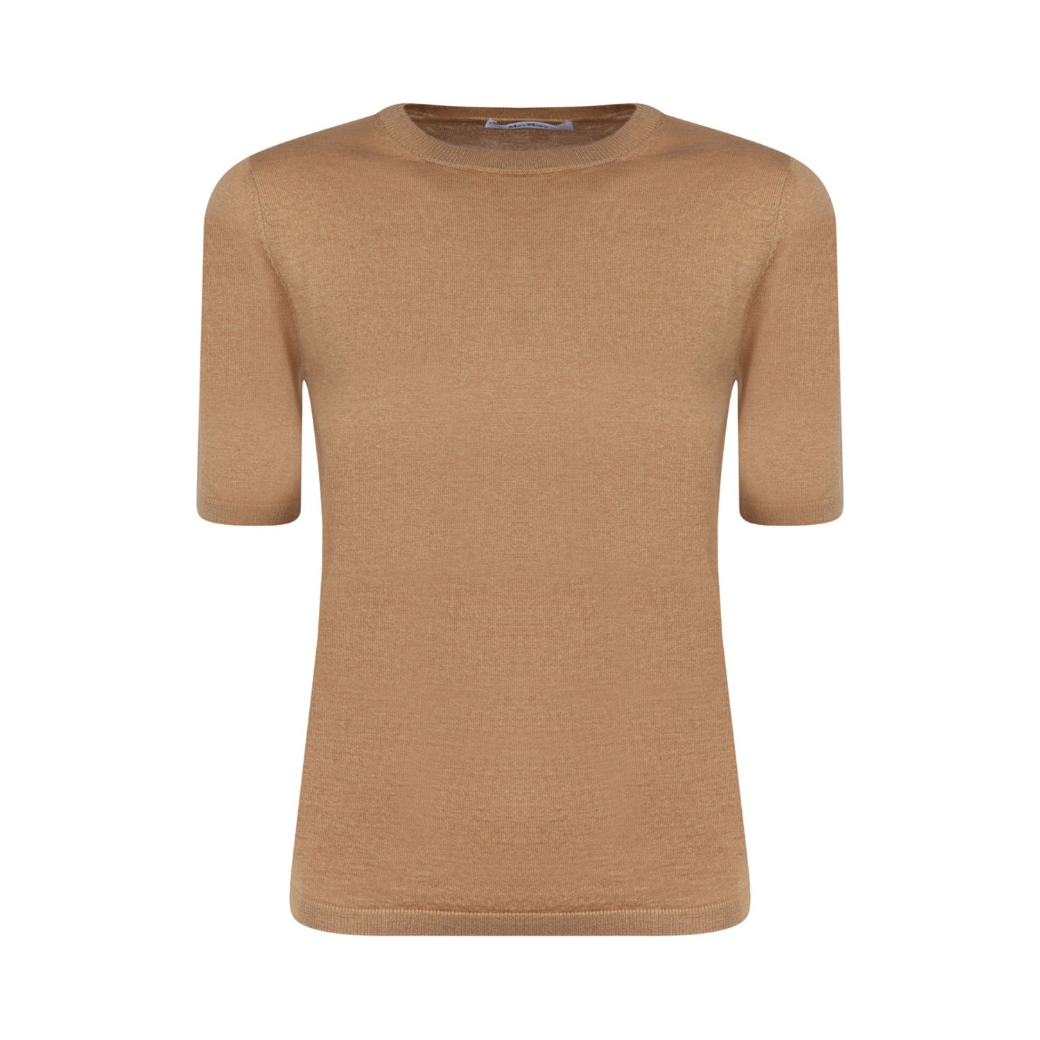 Max Mara Camel Brown Warren Sweater. Crew-neck sweater with short sleeves, made of a fine combination of silk and cashmere. The thin stockinette knit and the comfortable fit make it versatile and pleasant to wear. Finished with ribbed edges.