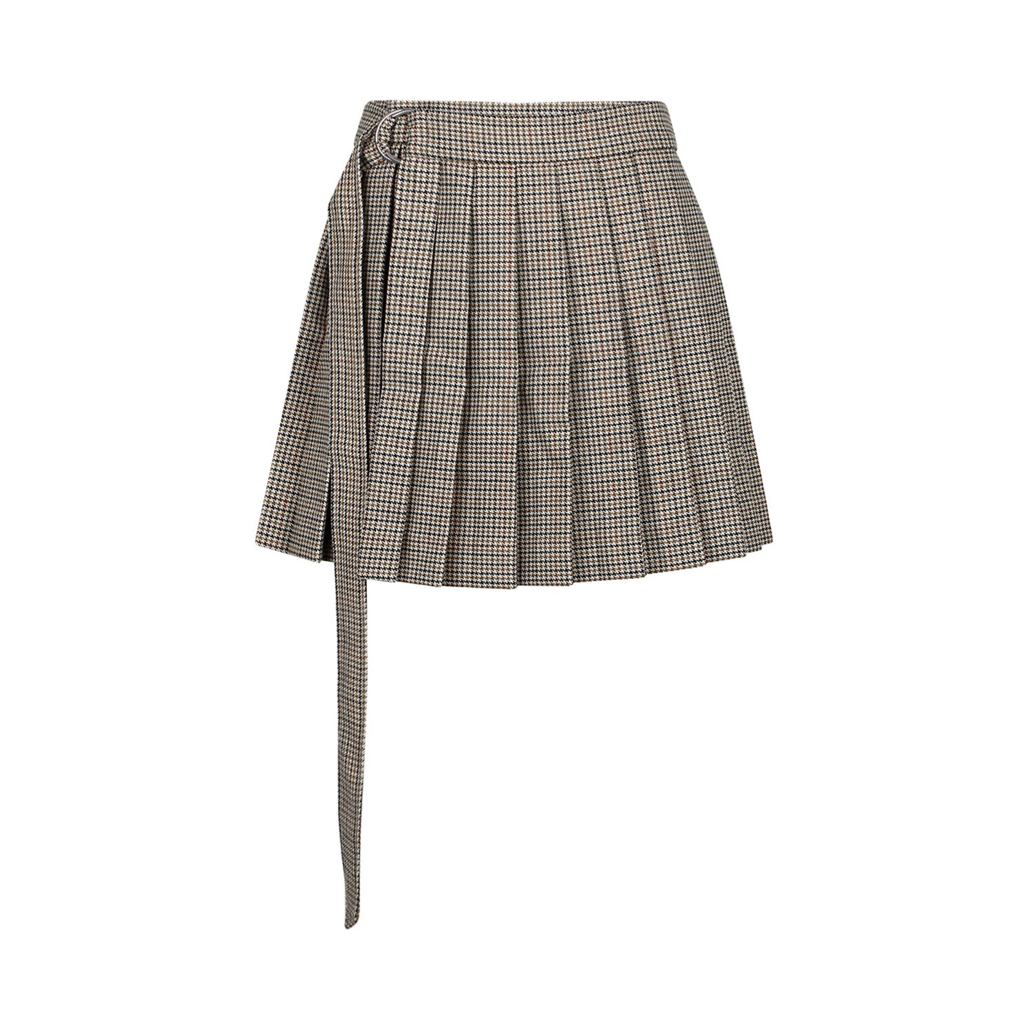 AMI Paris Beige Pleated Miniskirt. Beige virgin wool miniskirt, fully pleated, knitted construction, slide buckle fastening, thigh length, flared hem.