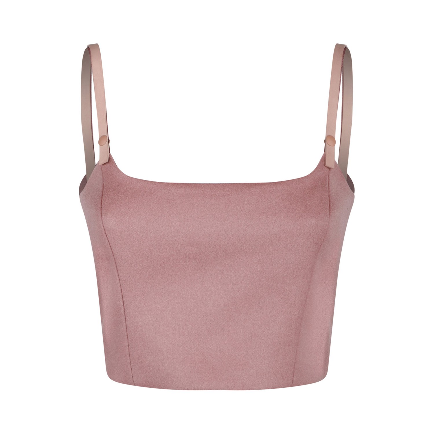 Max Mara Pepaia Pink Virgin Wool and Cashmere Crop Top. Pink virgin wool and cashmere crop top, thin removable straps with press stud, invisible back zip fastening, cropped, lined.