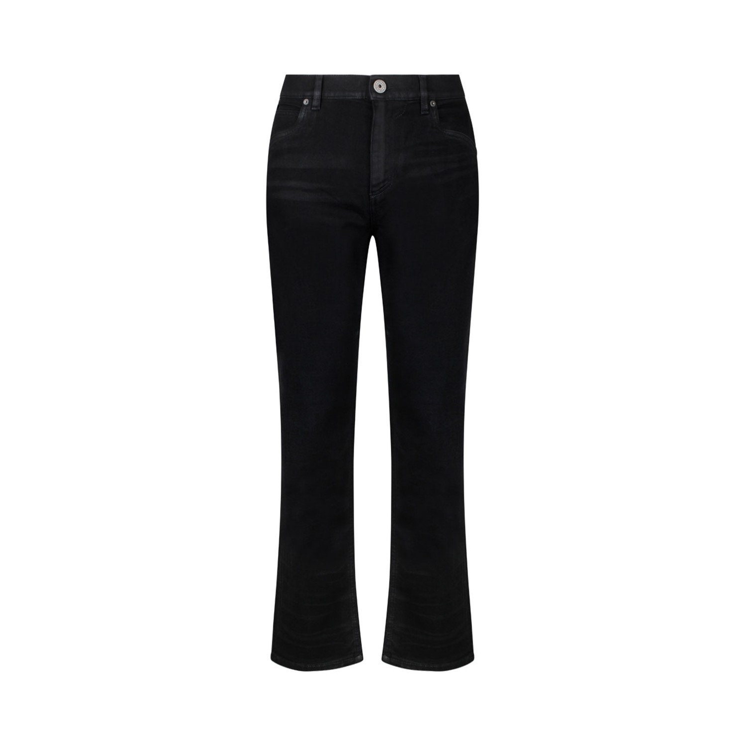 Balmain Black Denim Jeans. Black denim jeans, regular fit, five classic pockets, western cut out detailing. Fastening with vintage metal zip and Balmain Chain button, triple belt loops, logo embroidered on the back pocket.