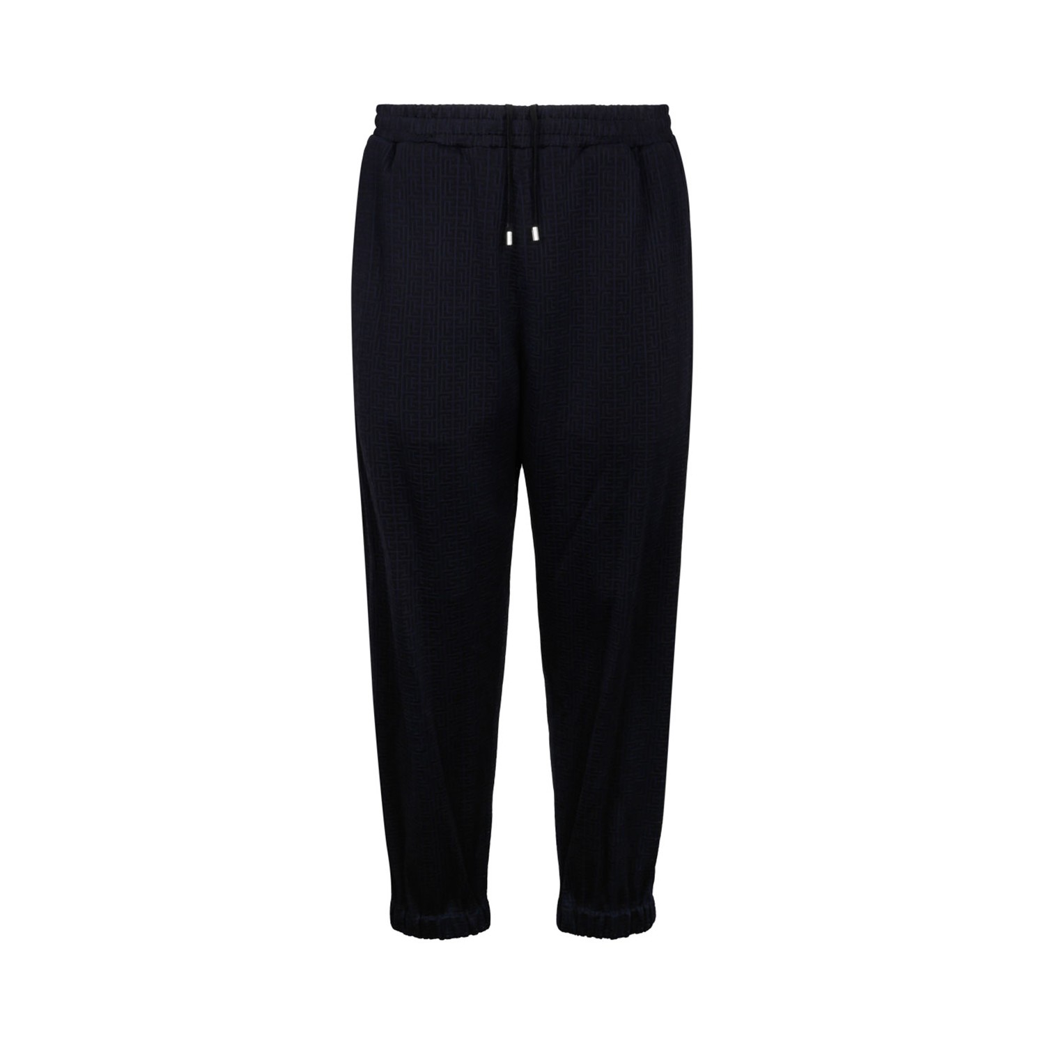 Balmain Marine Blue Jogger Style Trousers. Marine blue jersey mini monogram jogger style trousers, flowing fit, gathered ankles. Elasticated adjustable waist, two slanted pockets.