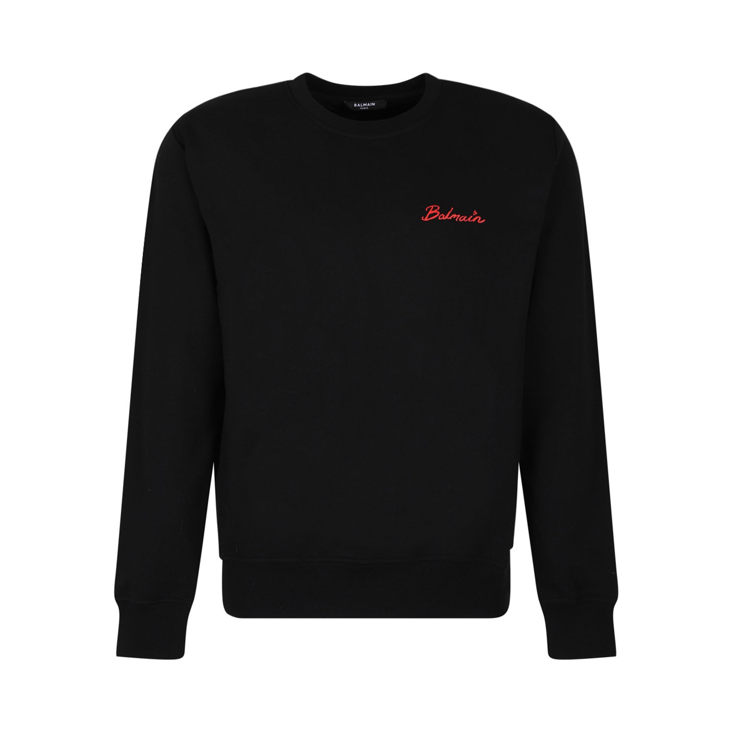 Balmain Black Kiss Print Sweatshirt. Black cotton sweatshirt, jersey texture, lips motif, logo lettering and ribbed trim.