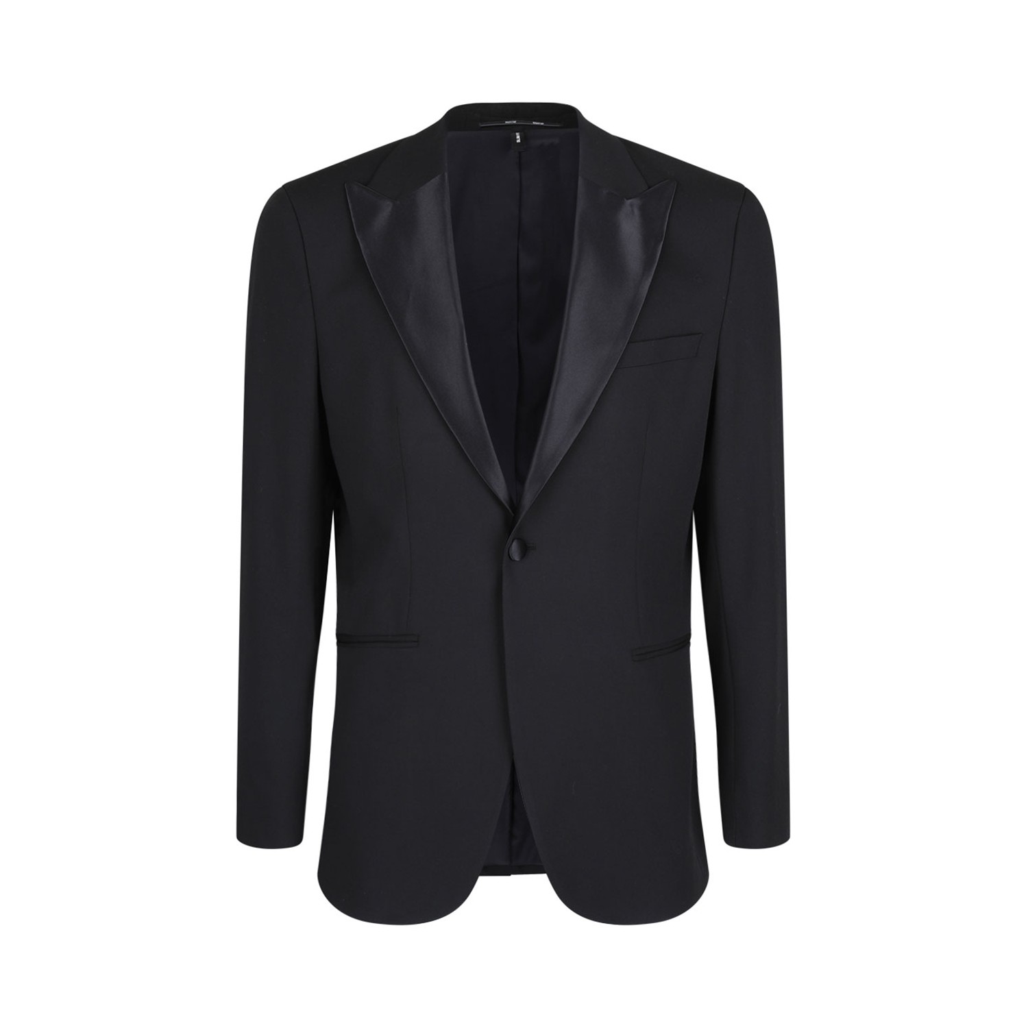Selected Black Tailored Blazer. Black single breasted blazer, satin pointed lapel, long sleeves with buttoned cuffs. Welted chest pocket, jetted front pockets with satin trim, single vent, fully lined.