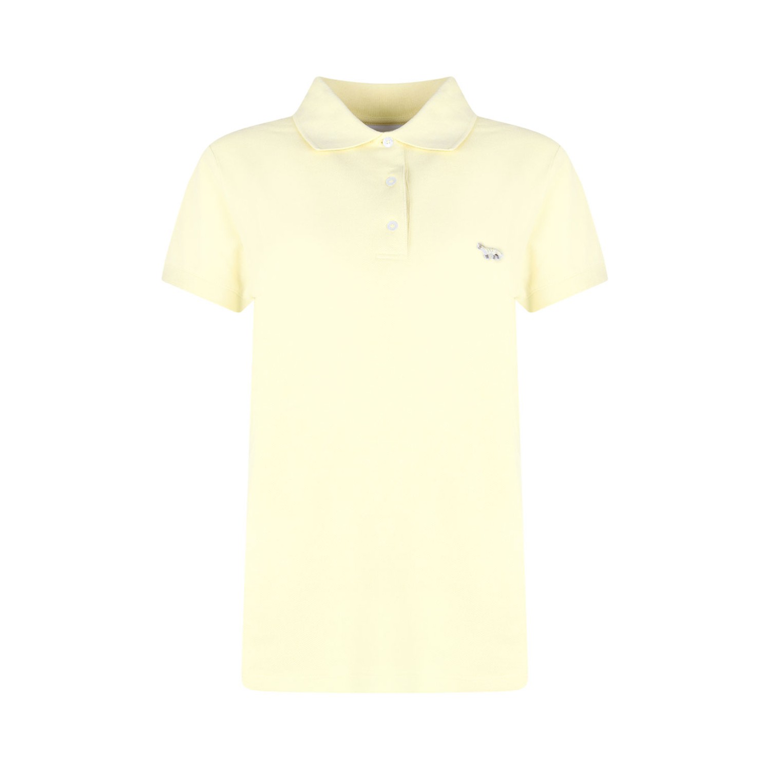 Maison Kitsune Chalk Yellow Polo Shirt. Chalk yellow cotton polo shirt, classic closure with button, short sleeve, logo patch to the front, straight hem.