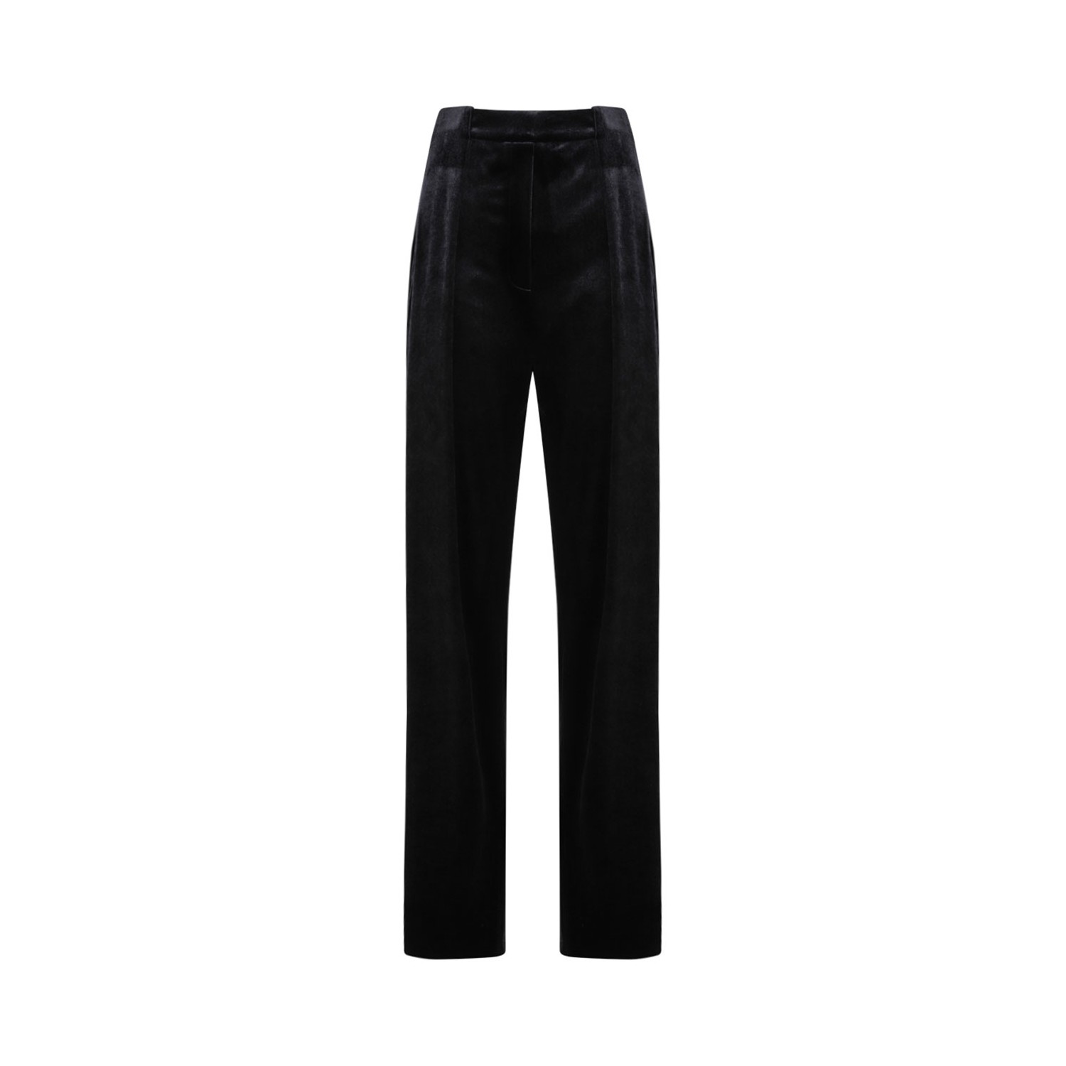 Balmain Black Velvet Trousers. Black velvet trousers, pleat detailing, rear zip fastening, slip pockets to the sides. High waisted, floor length.