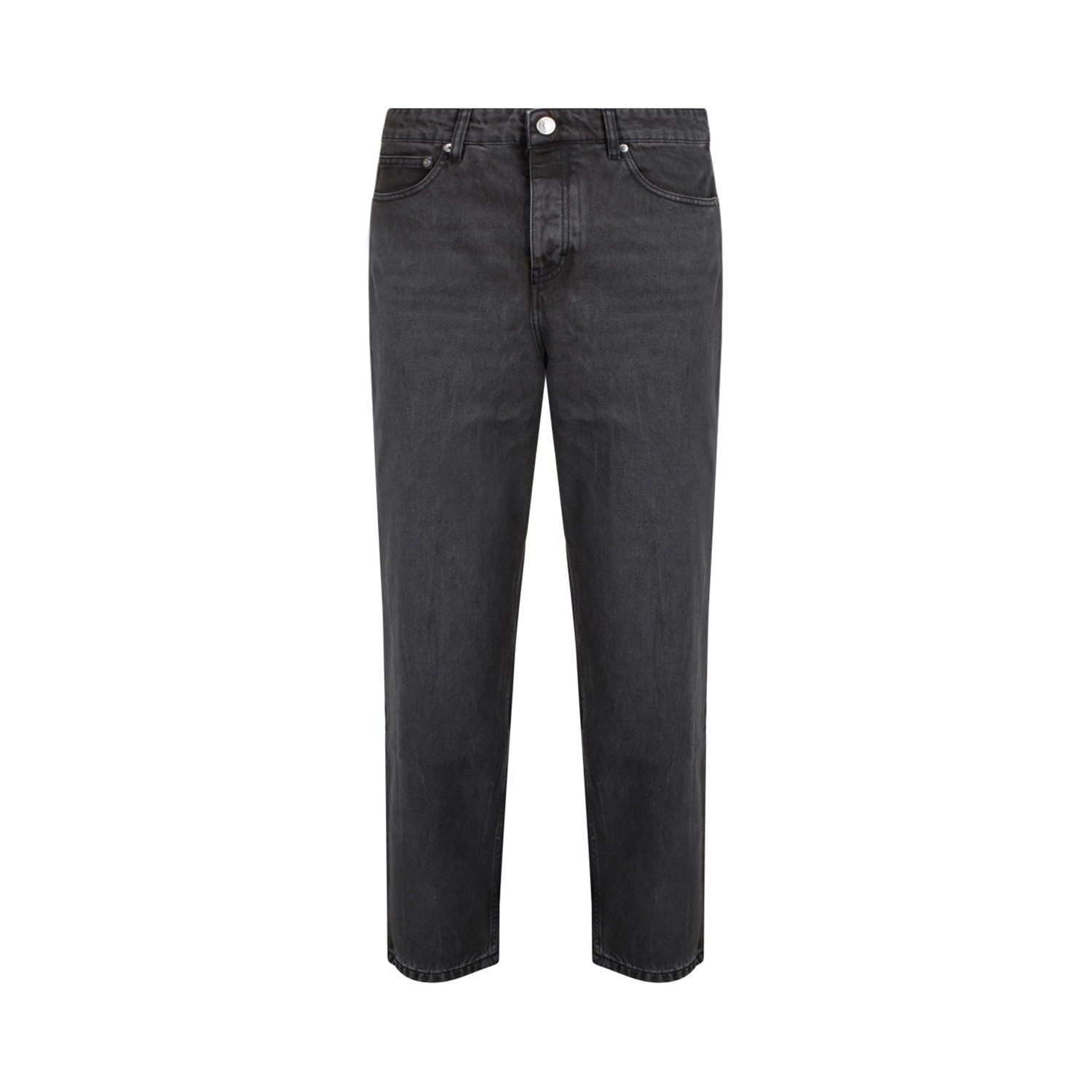 AMI Paris Black Logo Patch Jeans. Black cotton denim jeans, front button and zip fastening, belt loops, logo patch to the rear, classic five pockets.