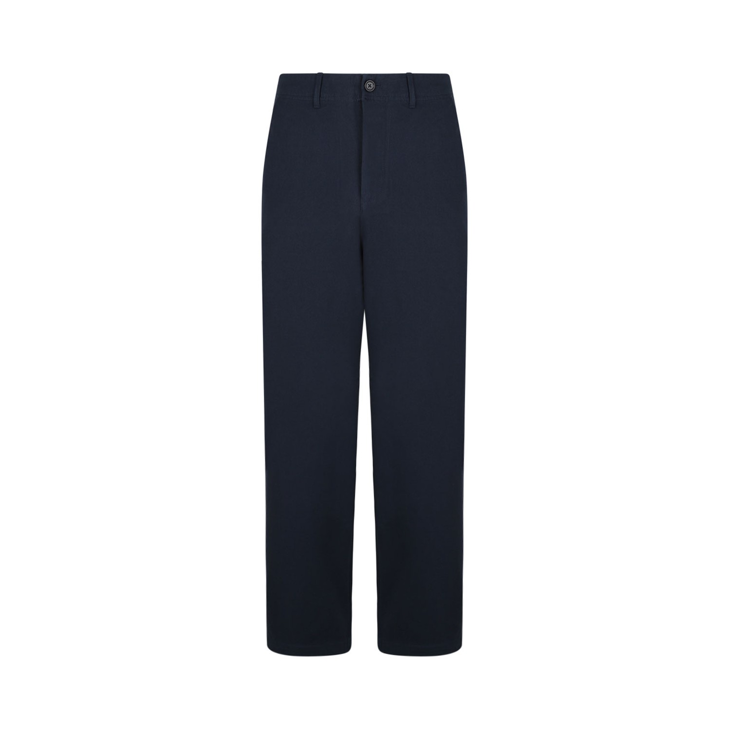 Selected Navy Blue Trousers. Navy blue trousers, front button and zip fastening, belt loops, four pockets.