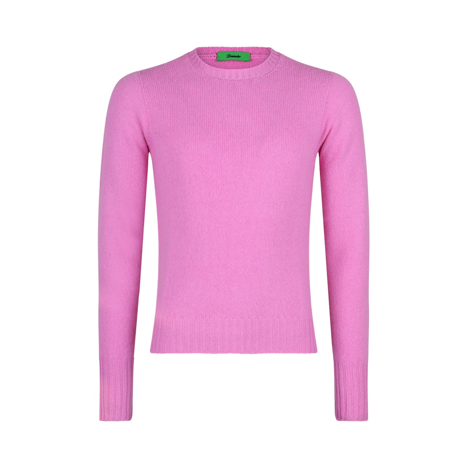 Drumohr Pink Jumper. Pink wool jumper, fine knit, round neck, long sleeves, ribbed cuffs and hem.