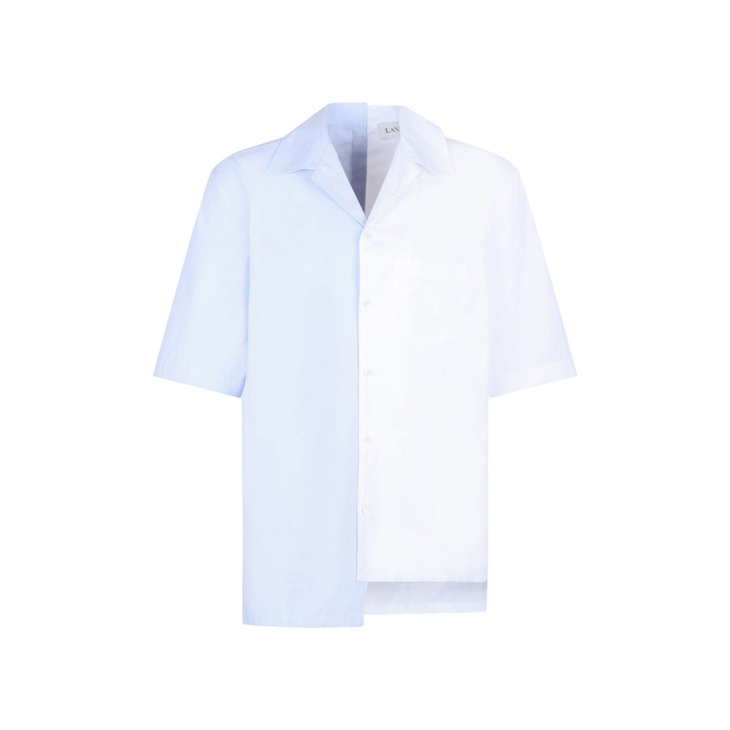 Lanvin Two-Tone White Shirt. White cotton shirt. front button closure, patch pocket on the chest, side slits.