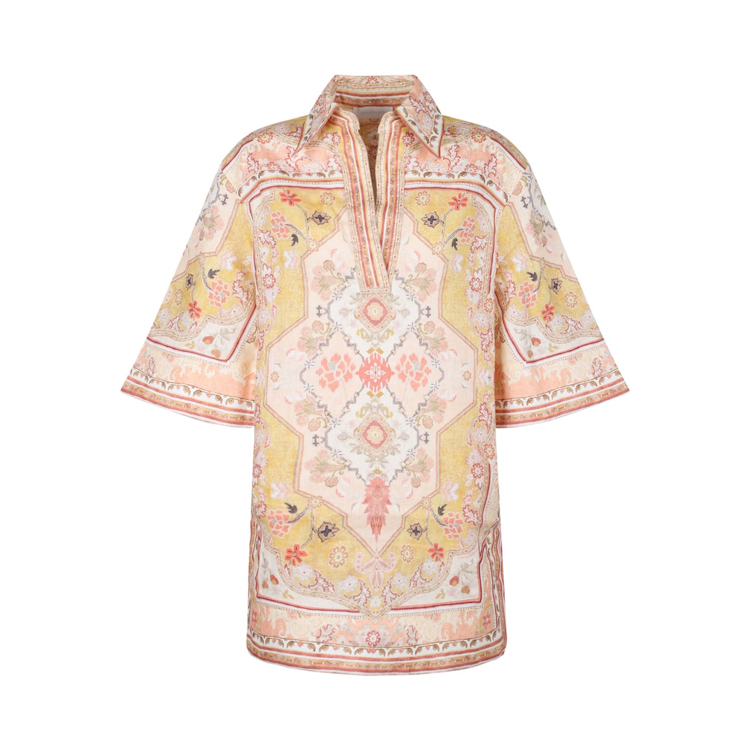 Zimmerman Multicolor Wylie Short Dress. Multicolor linen wylie short dress. French collar, short sleeves, two side pockets.