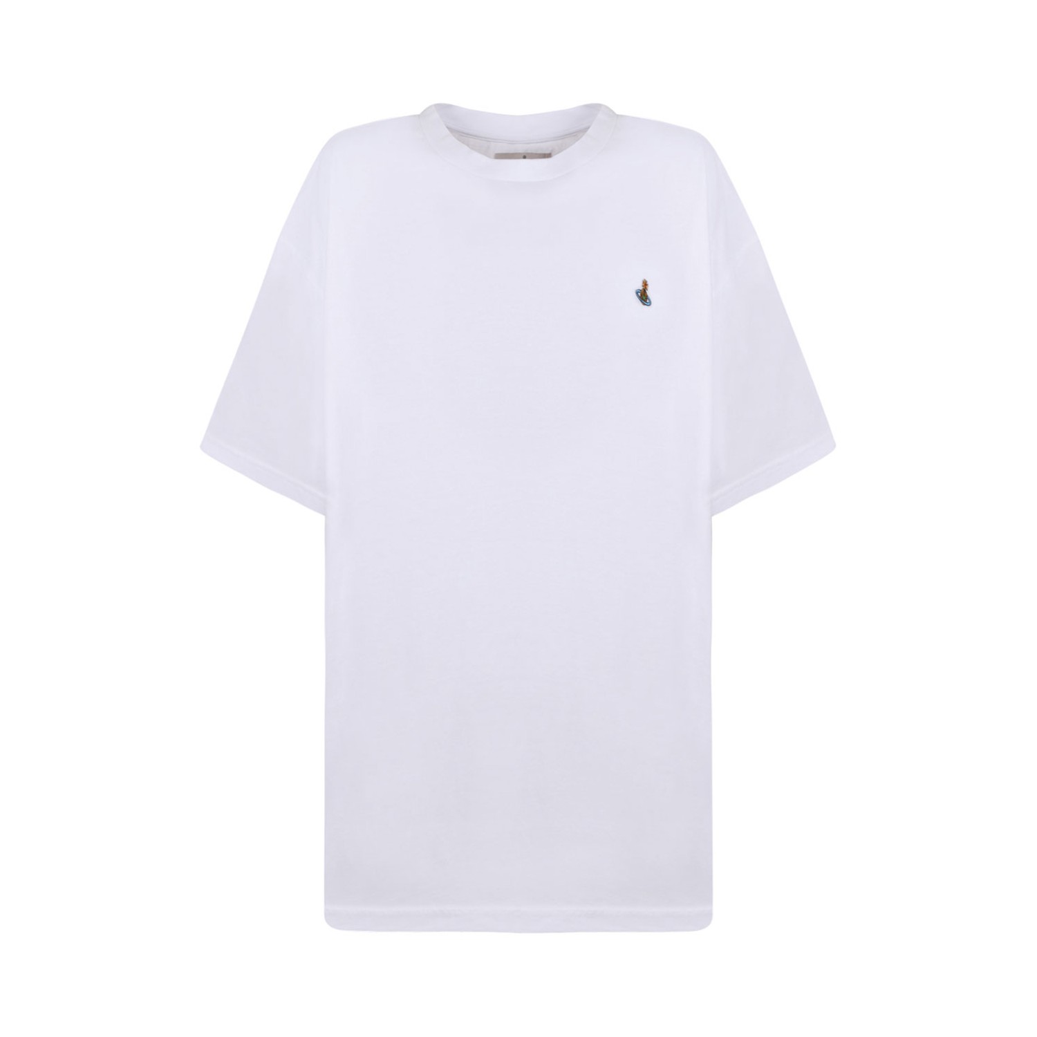 Vivienne Westwood White Logo Embroidered T-Shirt. White cotton t-shirt, crew neck, short sleeves, embroidery logo to the front.