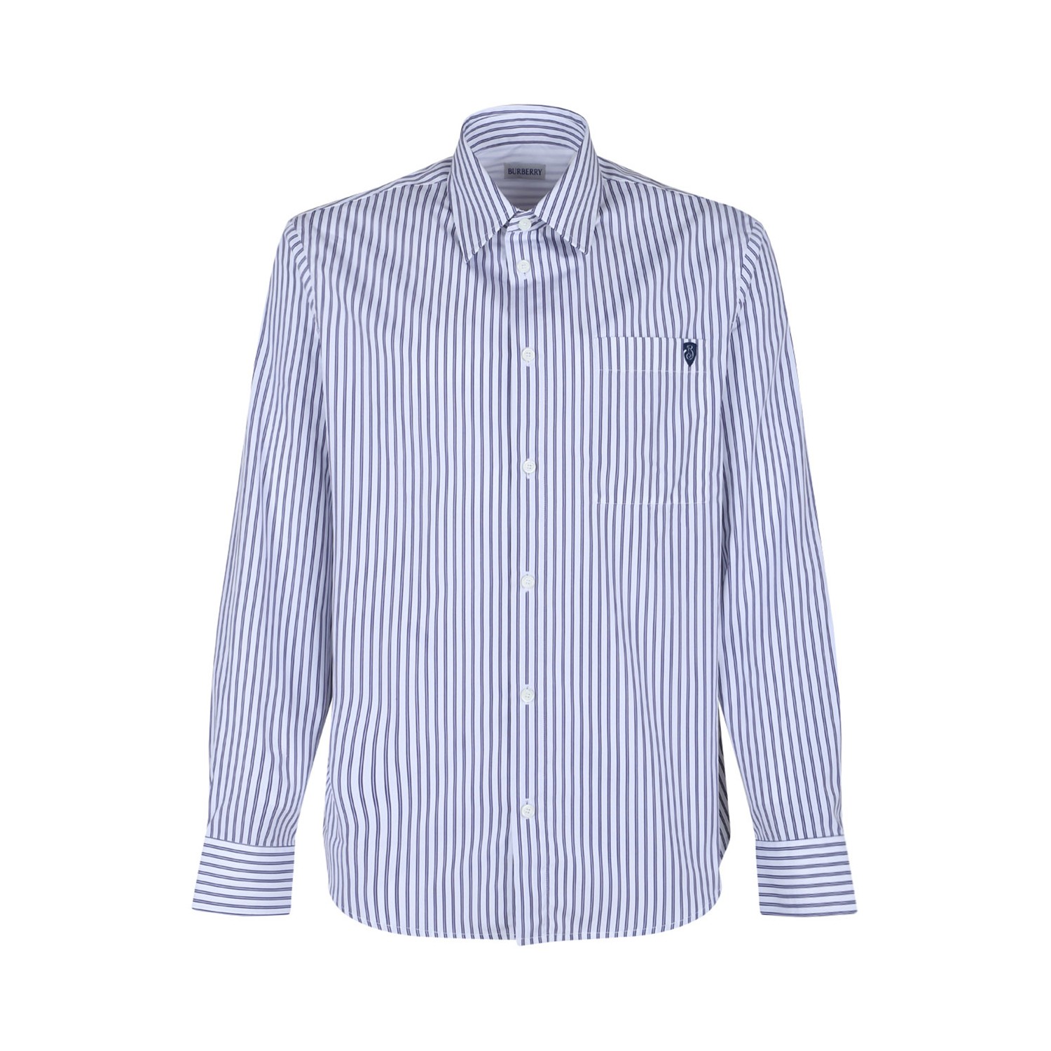 Burberry Striped Shirt. Blue and white cotton striped shirt, front button fastening, classic collar, buttoned cuffs, chest patch pocket.