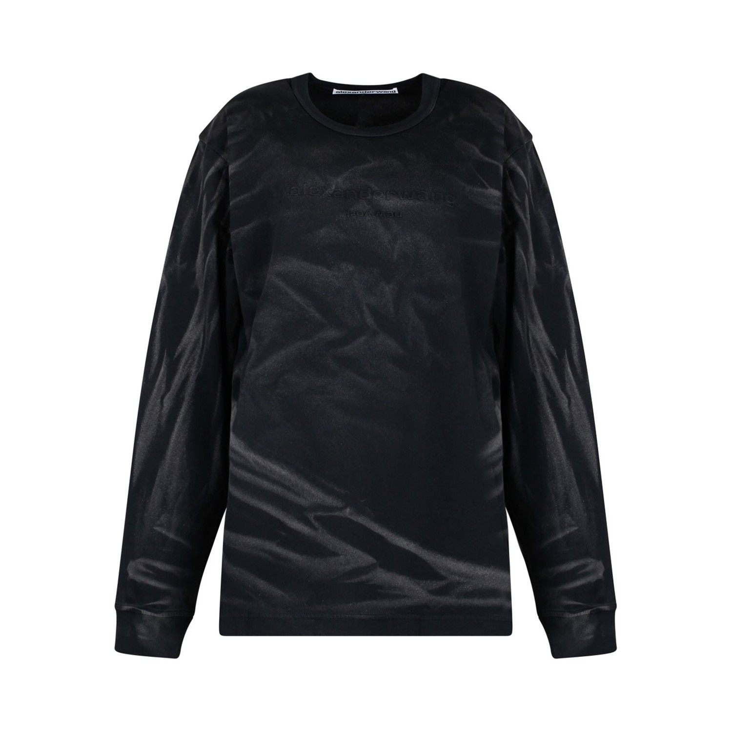 Alexander Wang Black Logo Embossed T-Shirt. Black logo embossed t-shirt, crew neck, long sleeves, ribbed cuffs.