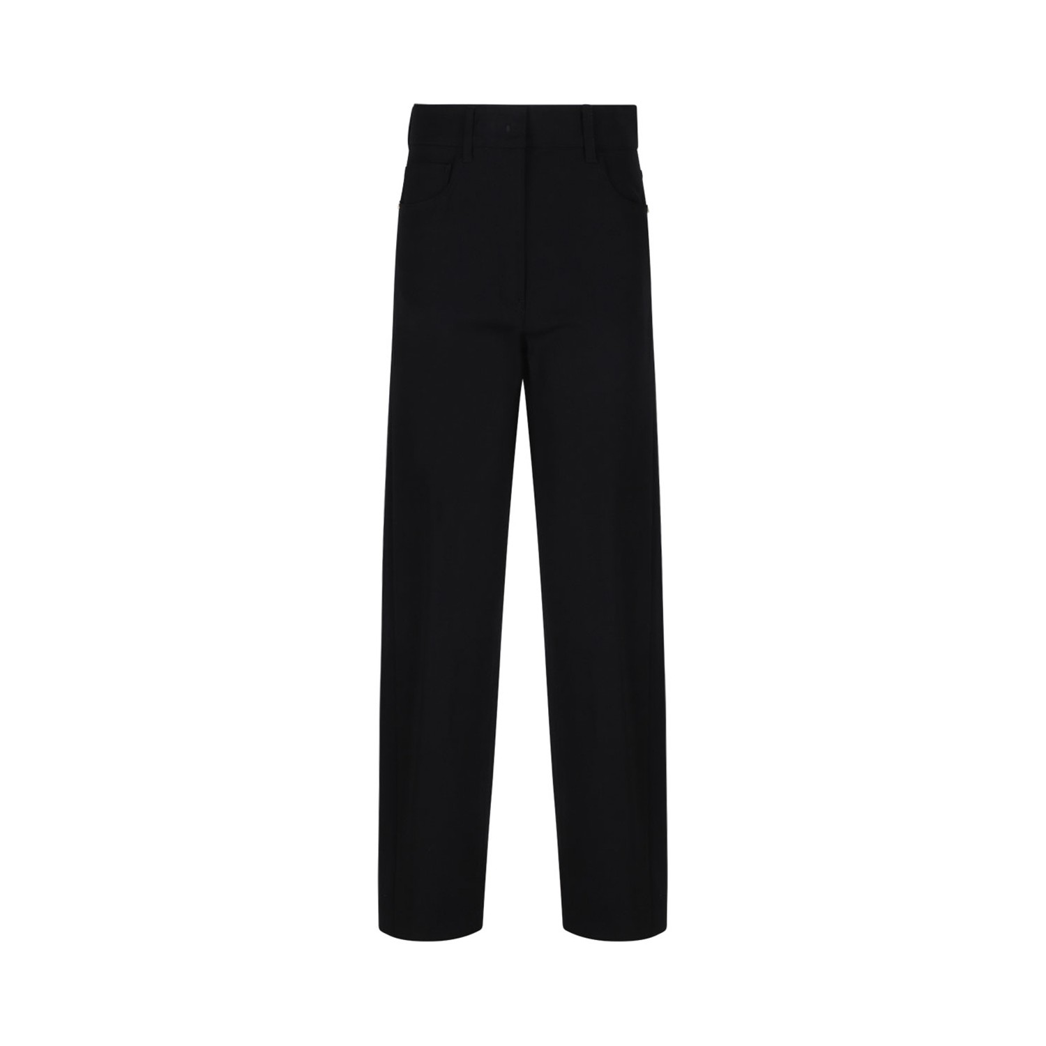 Genny Black Tapered Trousers. Black tapered trousers, concealed front button, hook and zip fastening. Classic five pockets, belt loops, logo plaque.