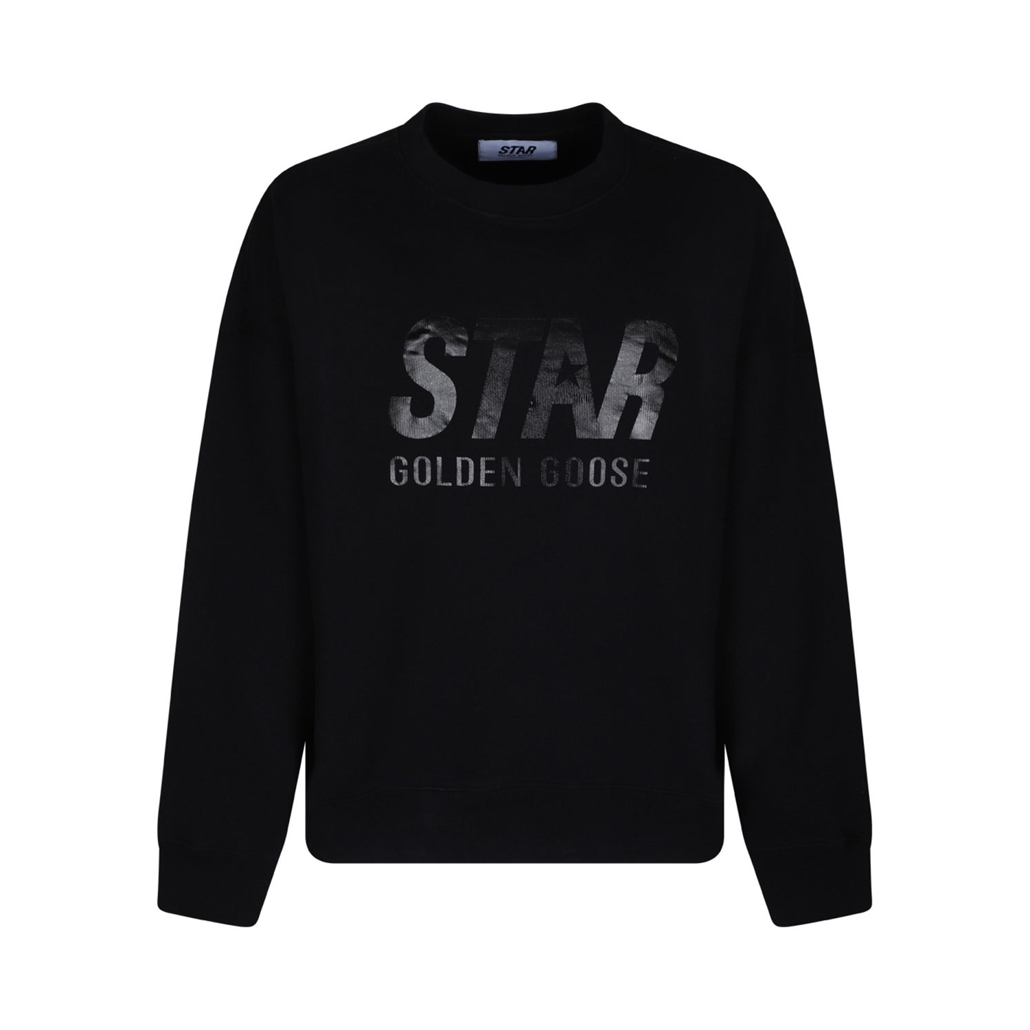 Golden Goose Black Logo Print Sweatshirt. Black cotton sweatshirt, logo print at the chest, drop shoulder, long sleeves.