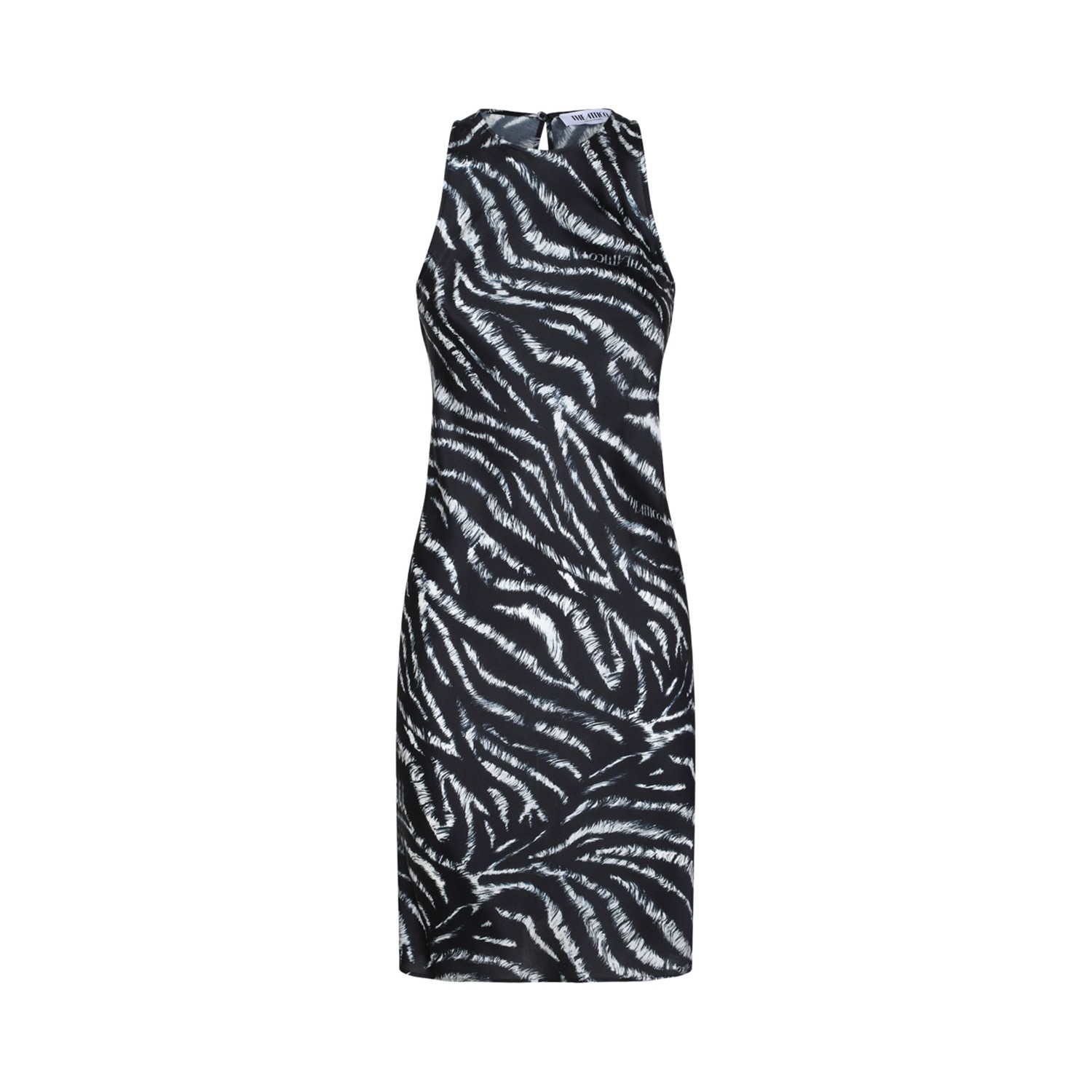The Attico Black Zebra Print Mini Dress. Black mini dress, zebra print, single rear button fastening, round neck, sleeveless, straight hem.