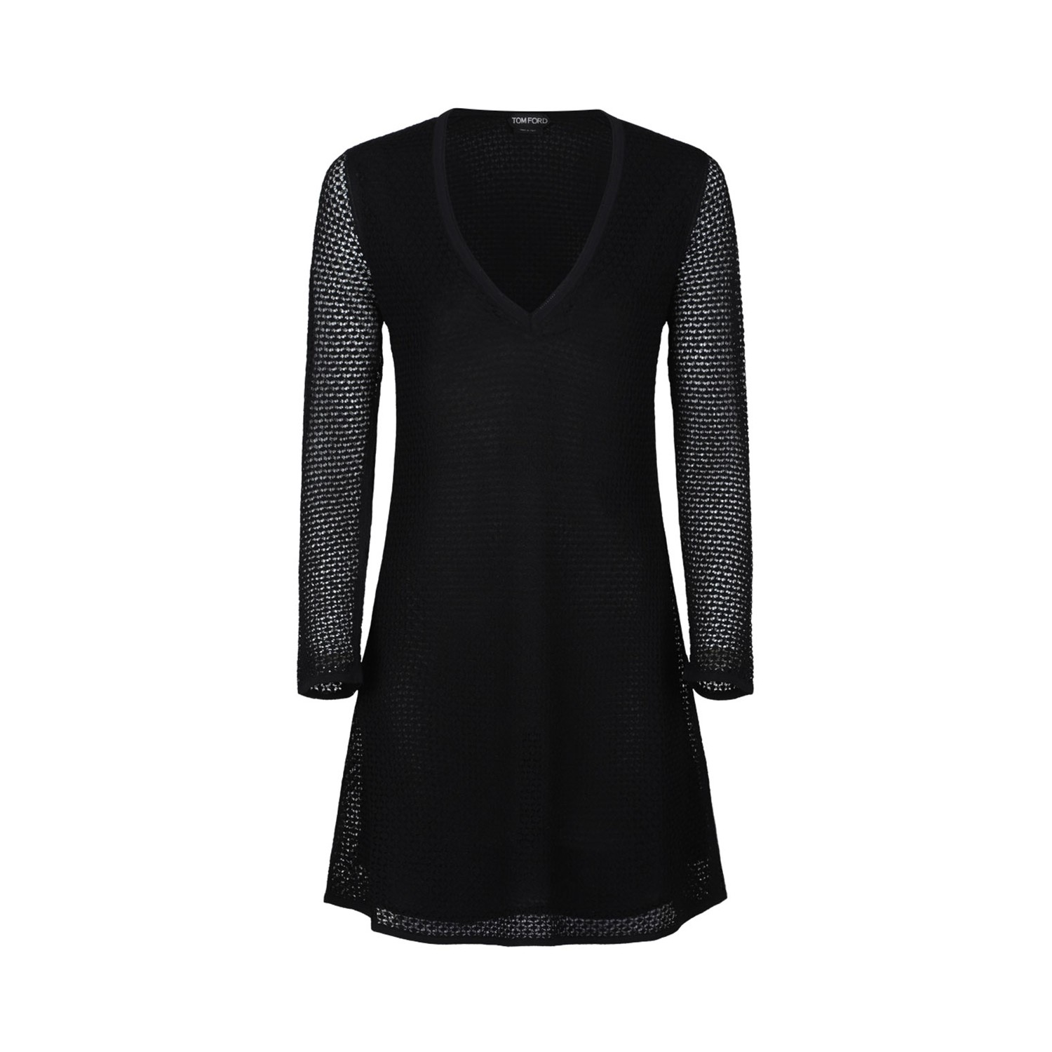 Tom Ford Black Dress. Black dress, V neck, penwork lace.