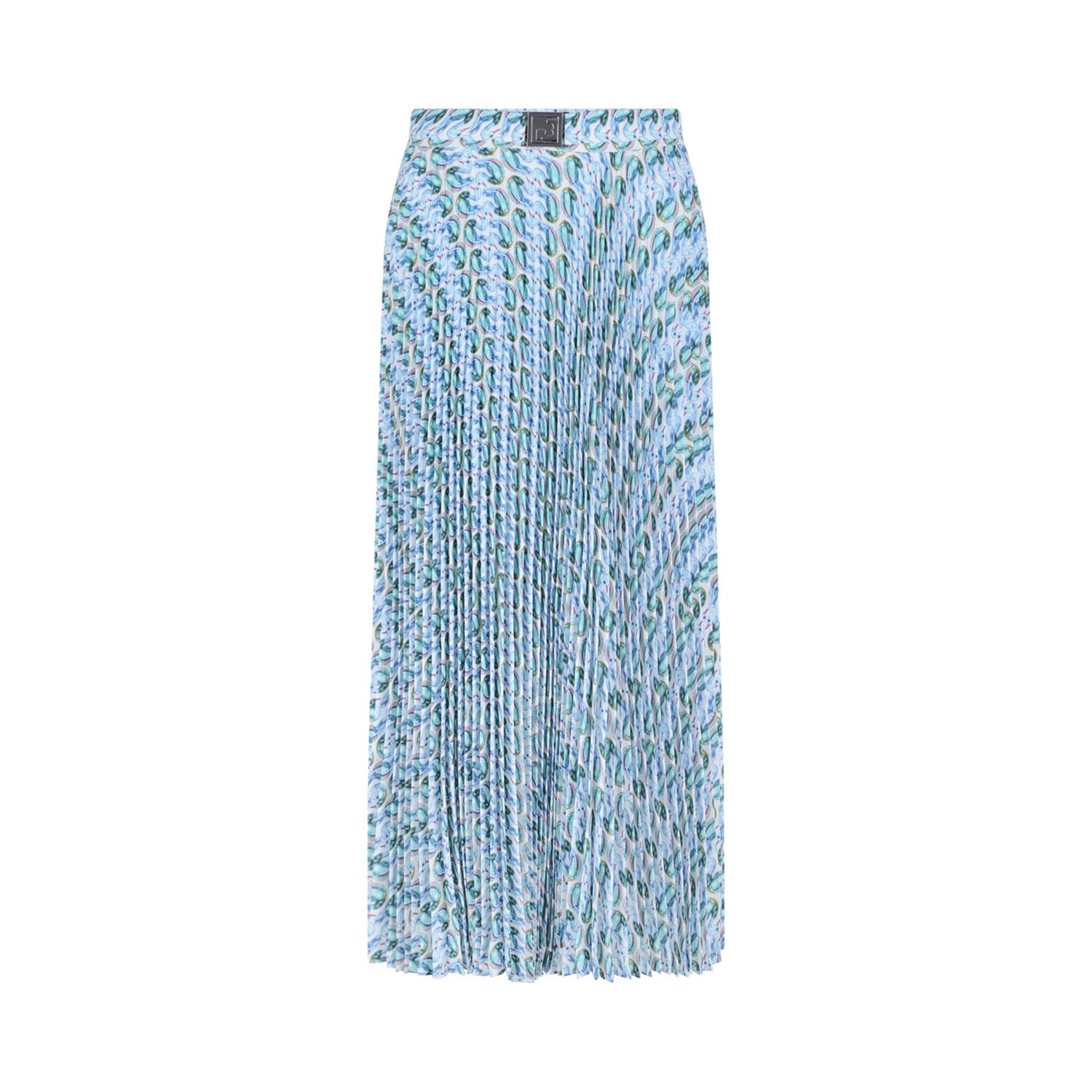 Tory Burch Abstract Print Maxi Skirt. Light blue maxi skirt, elasticated waistband, fully pleated, logo plaque.