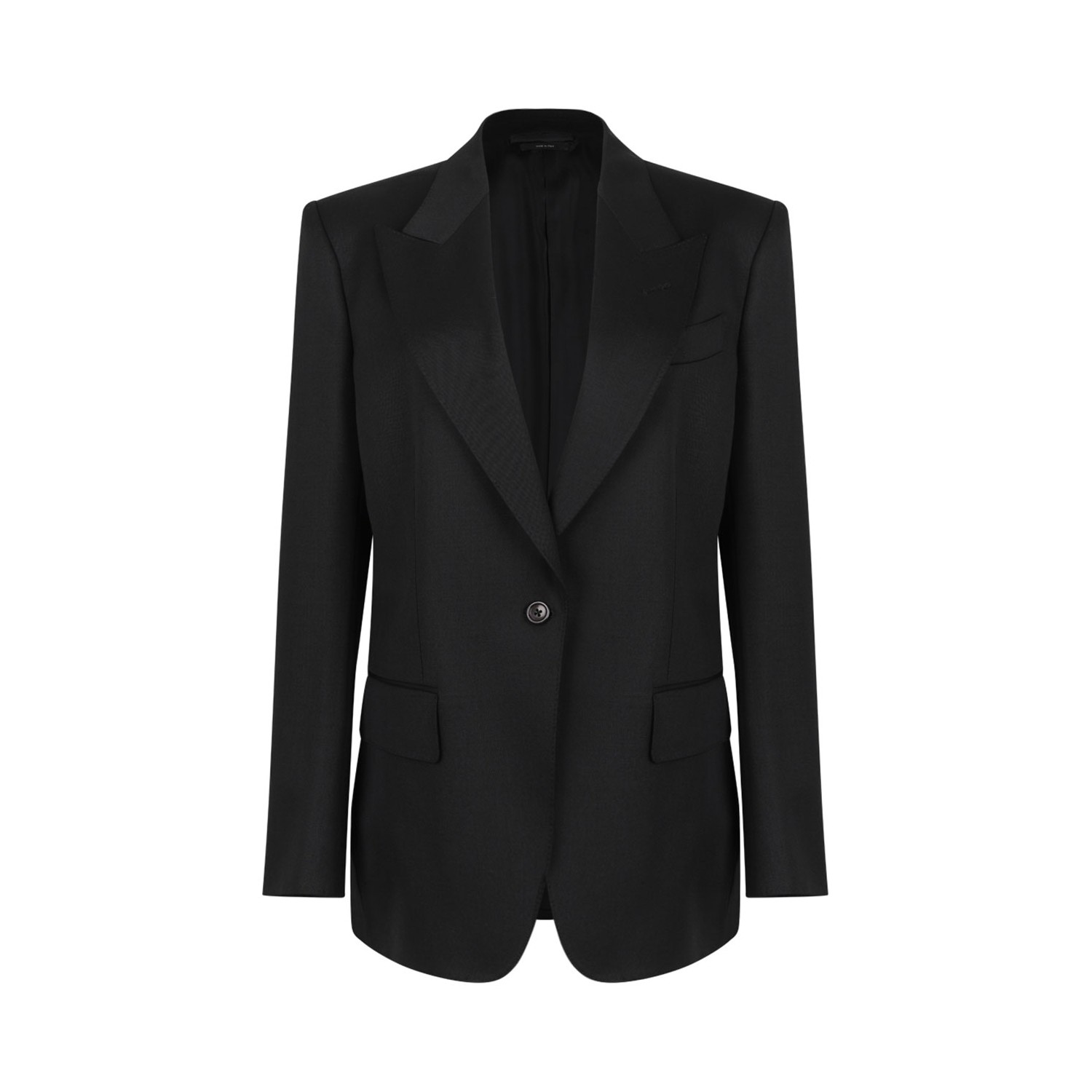 Tom Ford Black Single Breasted Blazer. Black wool blazer, front button fastening, chest welt pocket, two side flap pockets, buttoned-cuff sleeves.