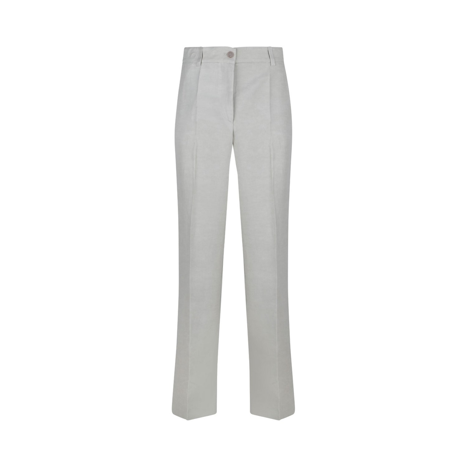P.A.R.O.S.H. Light Beige Tailored Trousers. Light beige linen texture trousers, mid-rise, zip fly fastening, front button fastening. Belt loops, two side slash pockets, two rear jetted pockets, pressed crease, straight leg.