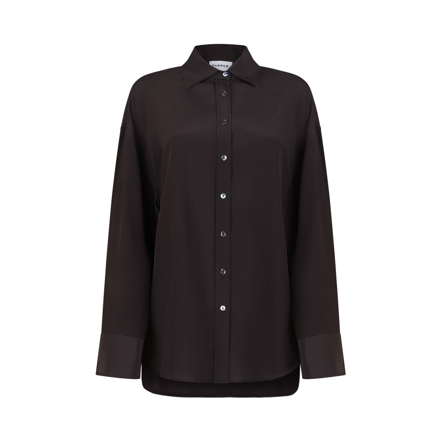 P.A.R.O.S.H. Brown Silk Shirt. Brown silk shirt, classic collar, front button fastening, long sleeves.