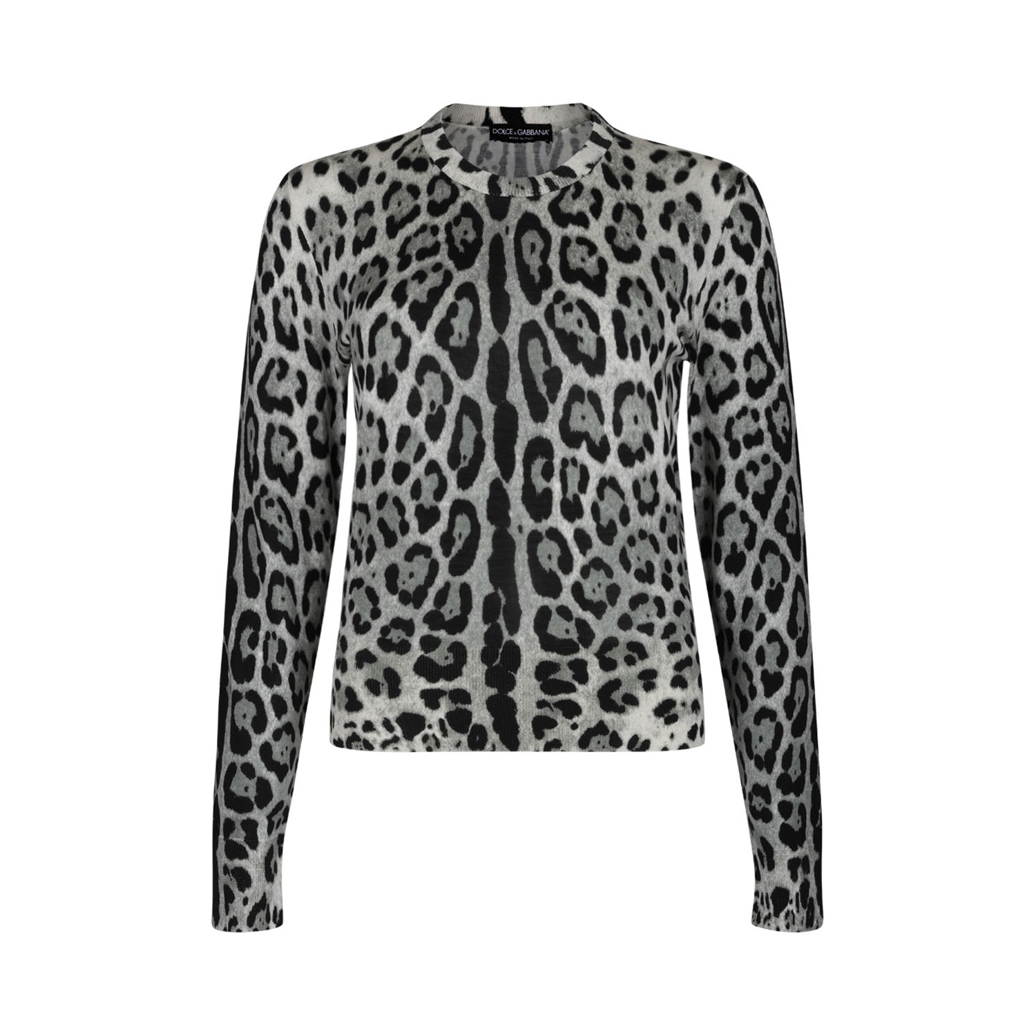 Dolce & Gabbana Grey Leo Print Pullover. Grey leo print pullover, crew neck, long sleeves, ribbed cuffs and hem, straight hem.