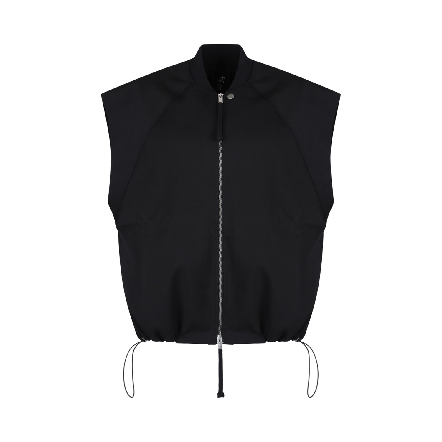 Thom Krom Black Bomber Vest. Black bomber vest, large armholes, ribbed collar, 2-way zip closure, adjustable at hem.