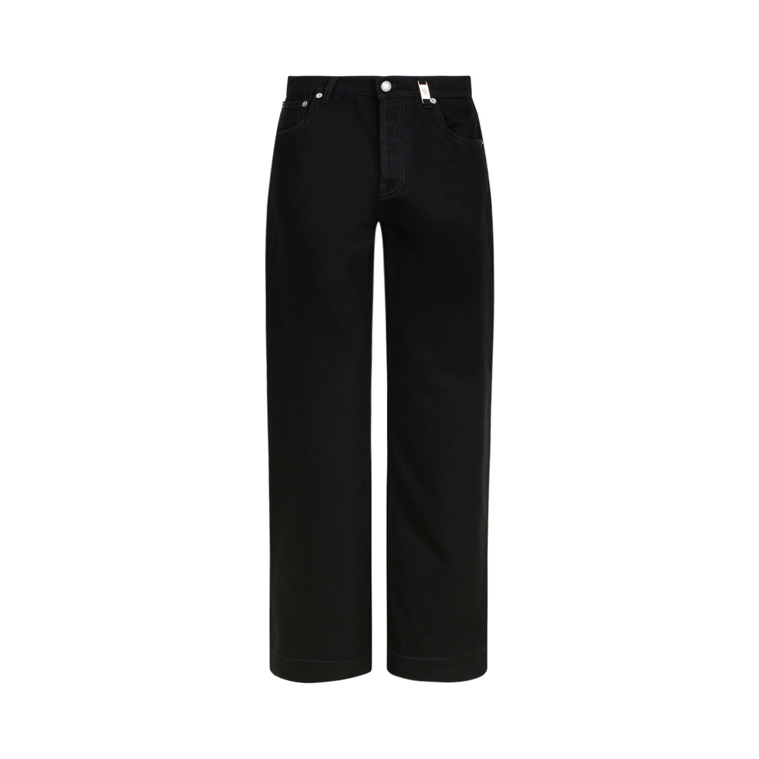 Alexander Mcqueen Black Wide Leg Jeans. Black wide leg jeans, front button and zip fastening, belt loops.