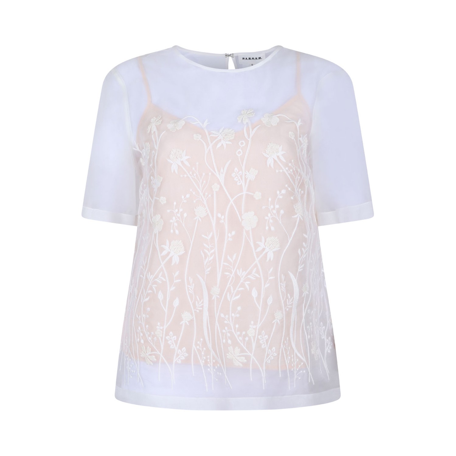 P.A.R.O.S.H. White Sorgente Top. White sleeveless top, crew neck.