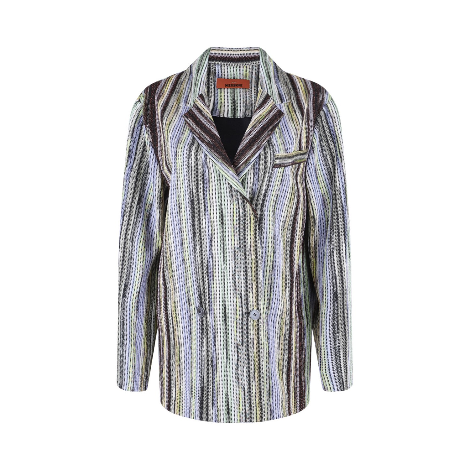 Missoni Striped Lame Blazer. Multicolour striped blazer, double-breasted button fastening, chest welt pocket, long sleeves.