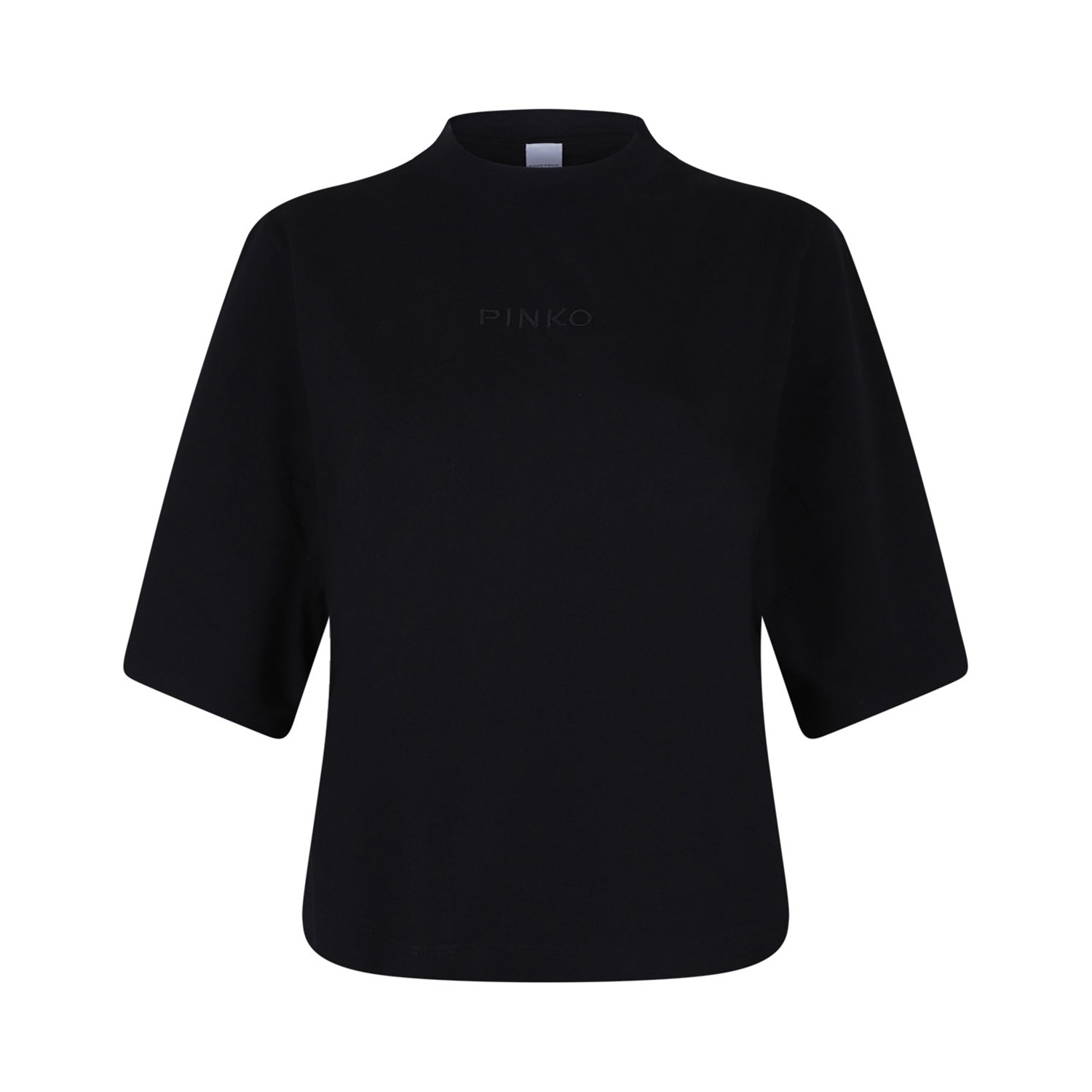 Pinko Black Embroidered Logo T-Shirt. Black cotton t-shirt, embroidered logo, crew neck, short sleeves.