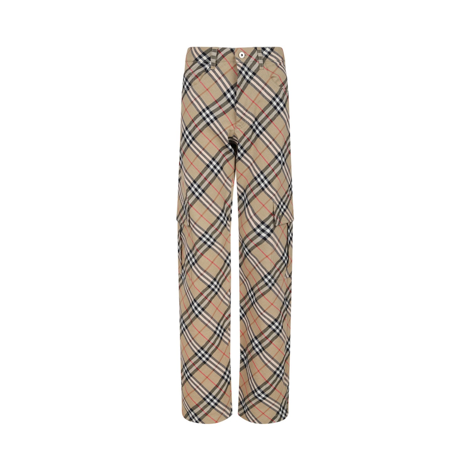 Burberry Checked Trousers. Vintage Check pattern trousers with front button fastening, belt loops, two side cargo pockets.