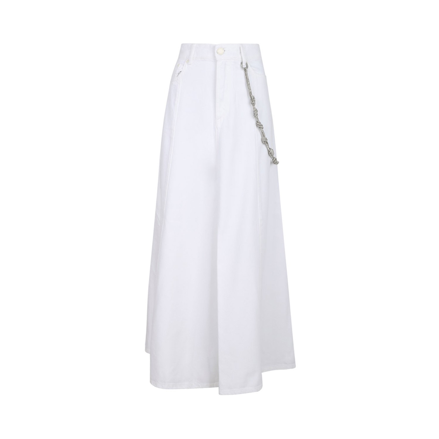 Pinko White Chain Detail Skirt. White cotton skirt, concealed fly and button fastening, belt loops, classic five pockets.