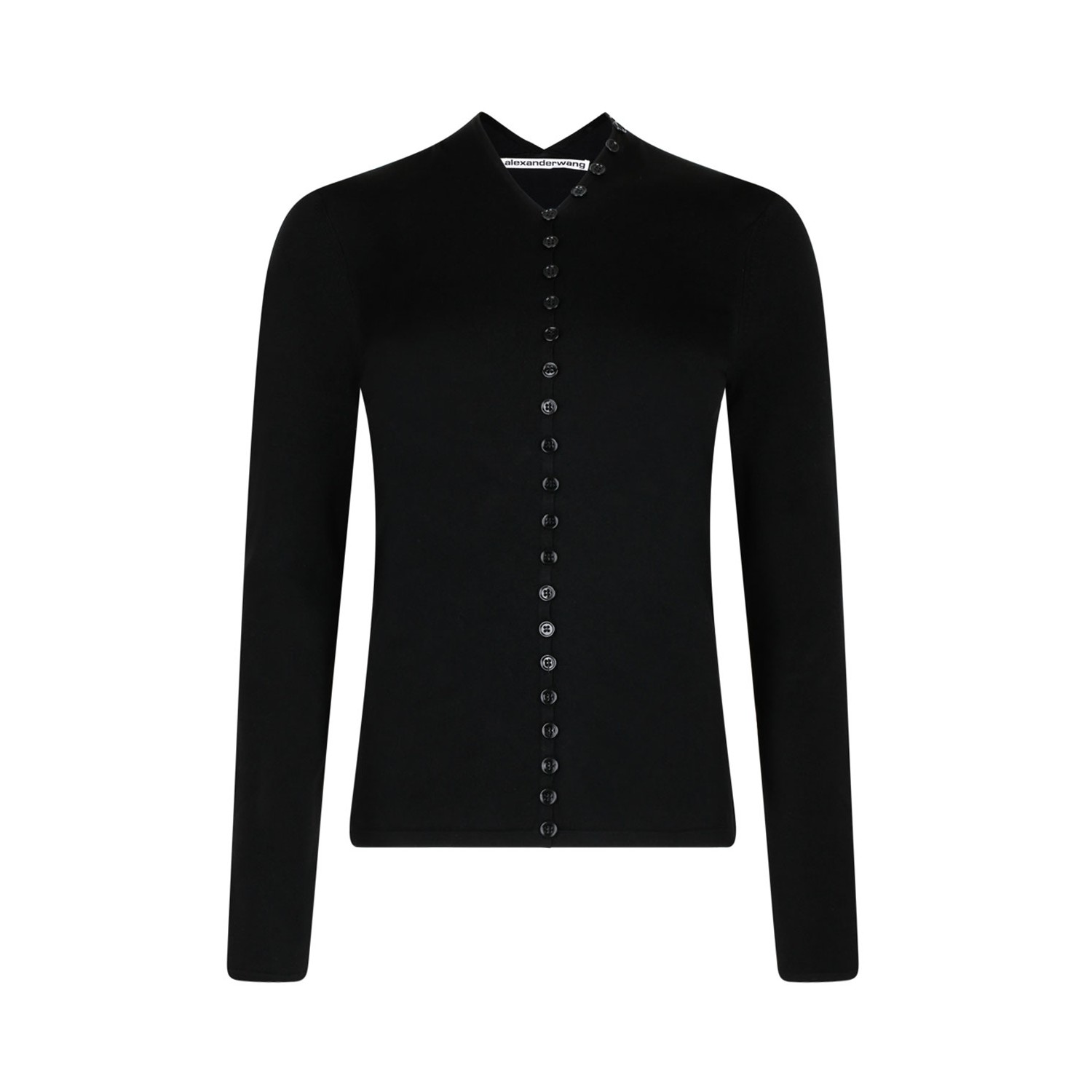 Alexander Wang Black Knitted Cardigan. Black knitted cardigan, front button fastening, long sleeves.