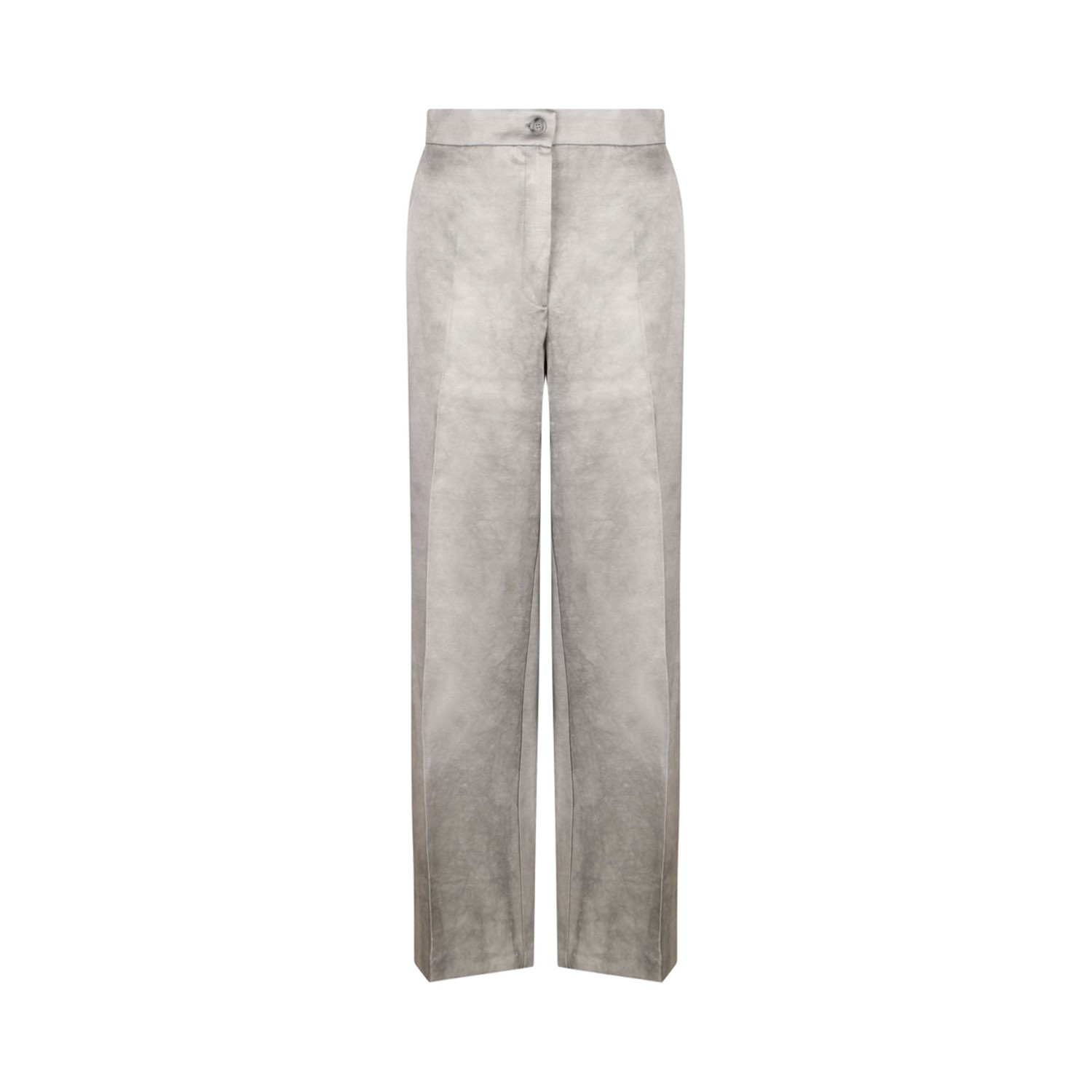 Pinko Light Grey Trousers. Light grey trousers, wide leg, front button and zip fastening. Two diagonal pockets to the sides, two rear welt pockets.