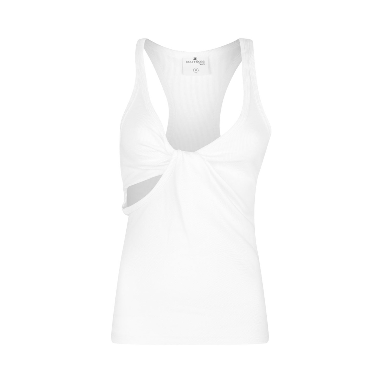 Courreges White 90's Tank Top. White cotton tank top with twist detailing, asymmetric design, cut-out detailing, thin shoulder straps.