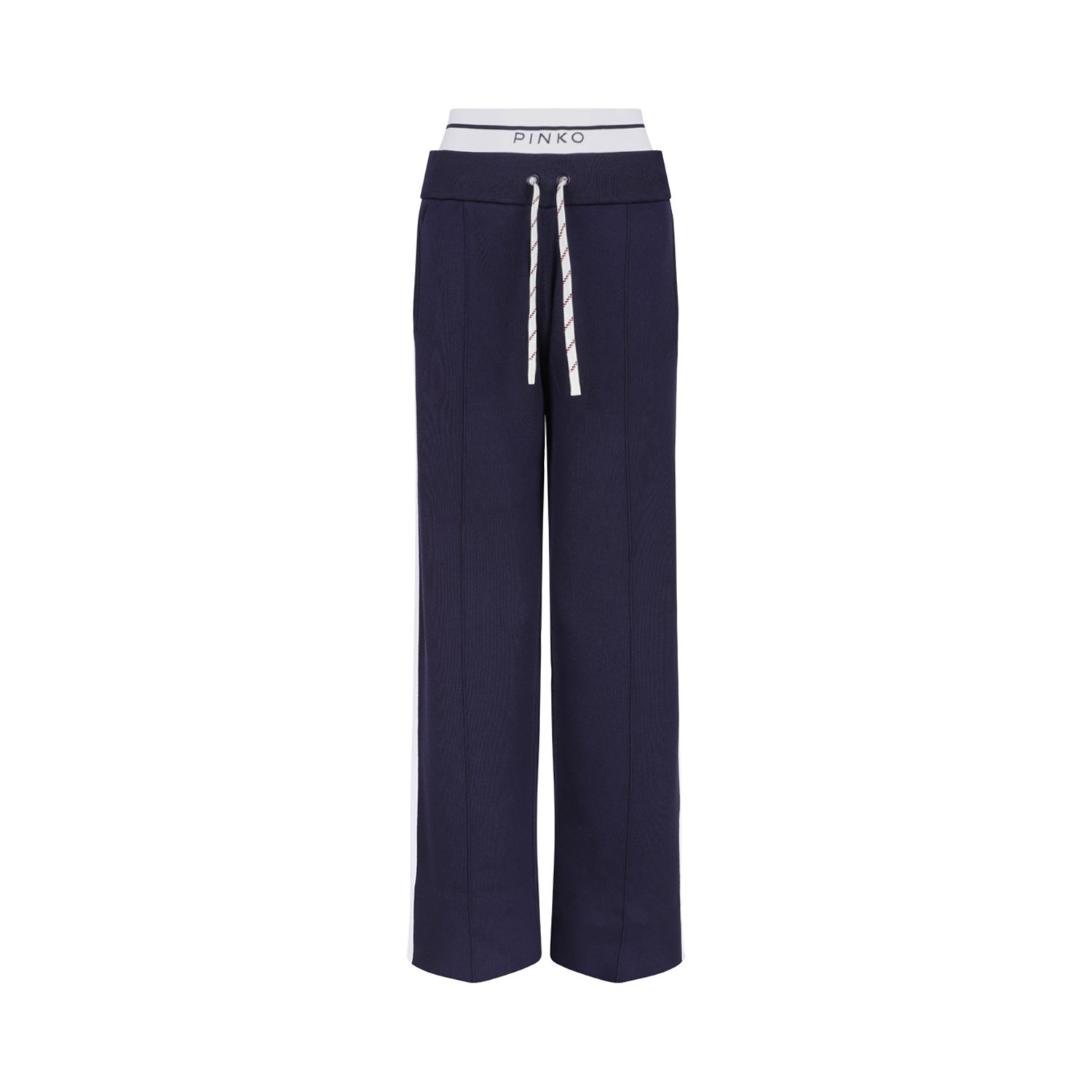 Pinko Blue and White Track Pants. Blue and white track pants, elasticated drawstring waistband, embossed logo to the rear, side stripe detailing.