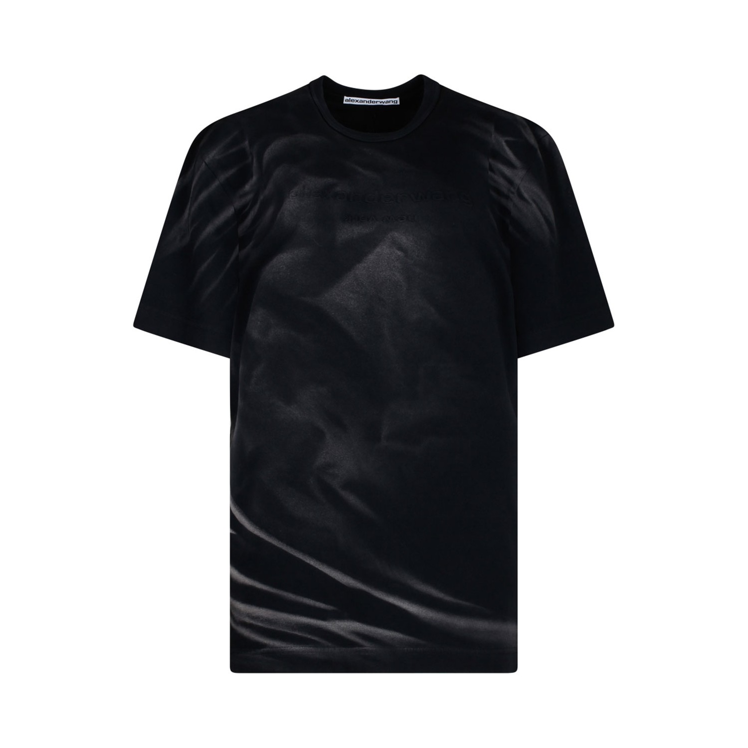 Alexander Wang Black Logo Embossed T-Shirt. Black cotton t-shirt, logo embossed, crew neck, short sleeves.