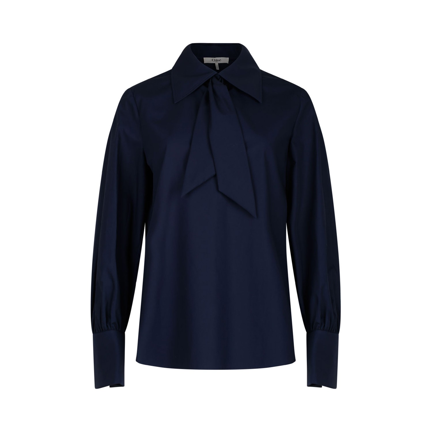 Chloe Ink Navy Blouse. Ink navy blouse, shirt collar, long sleeves.