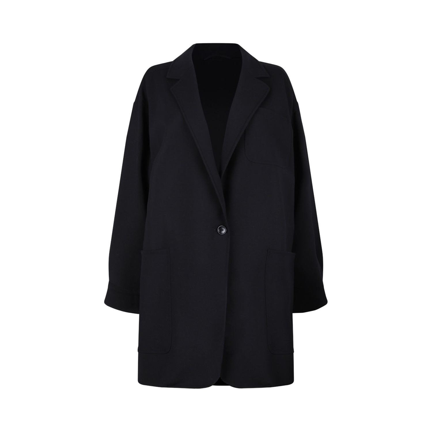 Max Mara Black Orlaya Blazer. Black virgin wool blazer, front button fastening, long sleeves, two pockets, V neck.