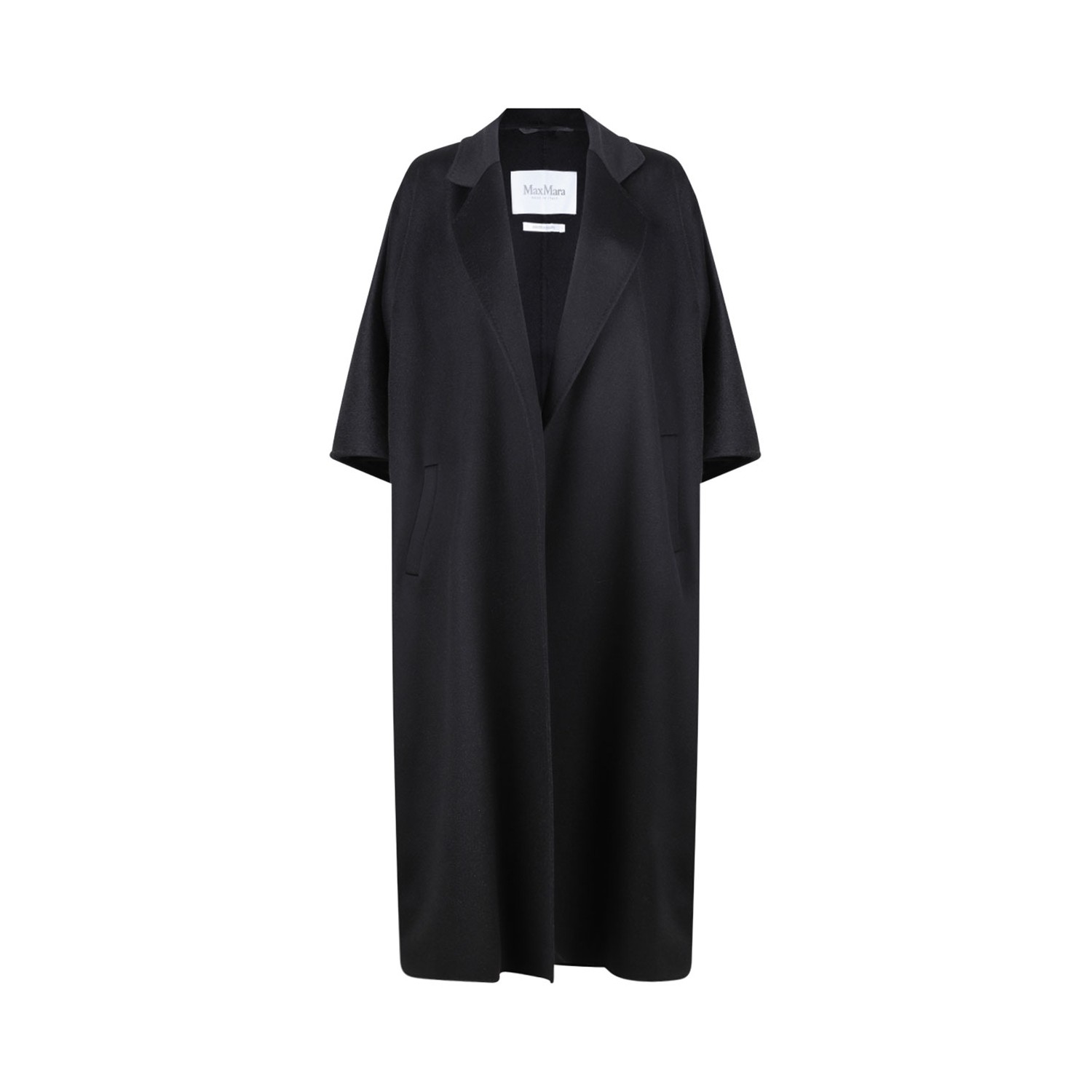 Max Mara Black Gitano Coat. Black camel hair coat, two side welt pockets, three-quarter length sleeves.
