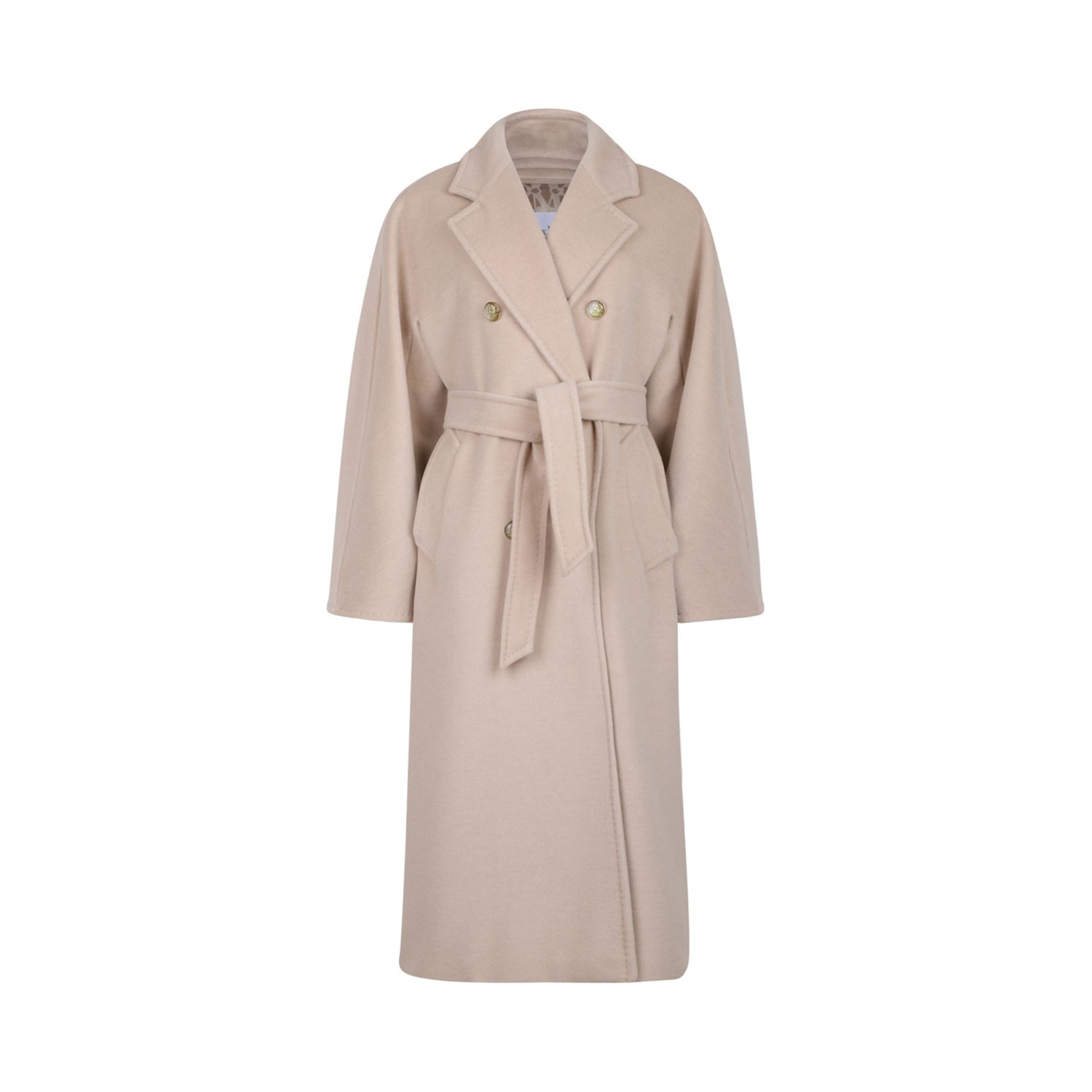 Max Mara Light Beige Ticino Coat. Light beige coat, double-breasted button fastening, two side welt pockets, notched lapels, long sleeves.