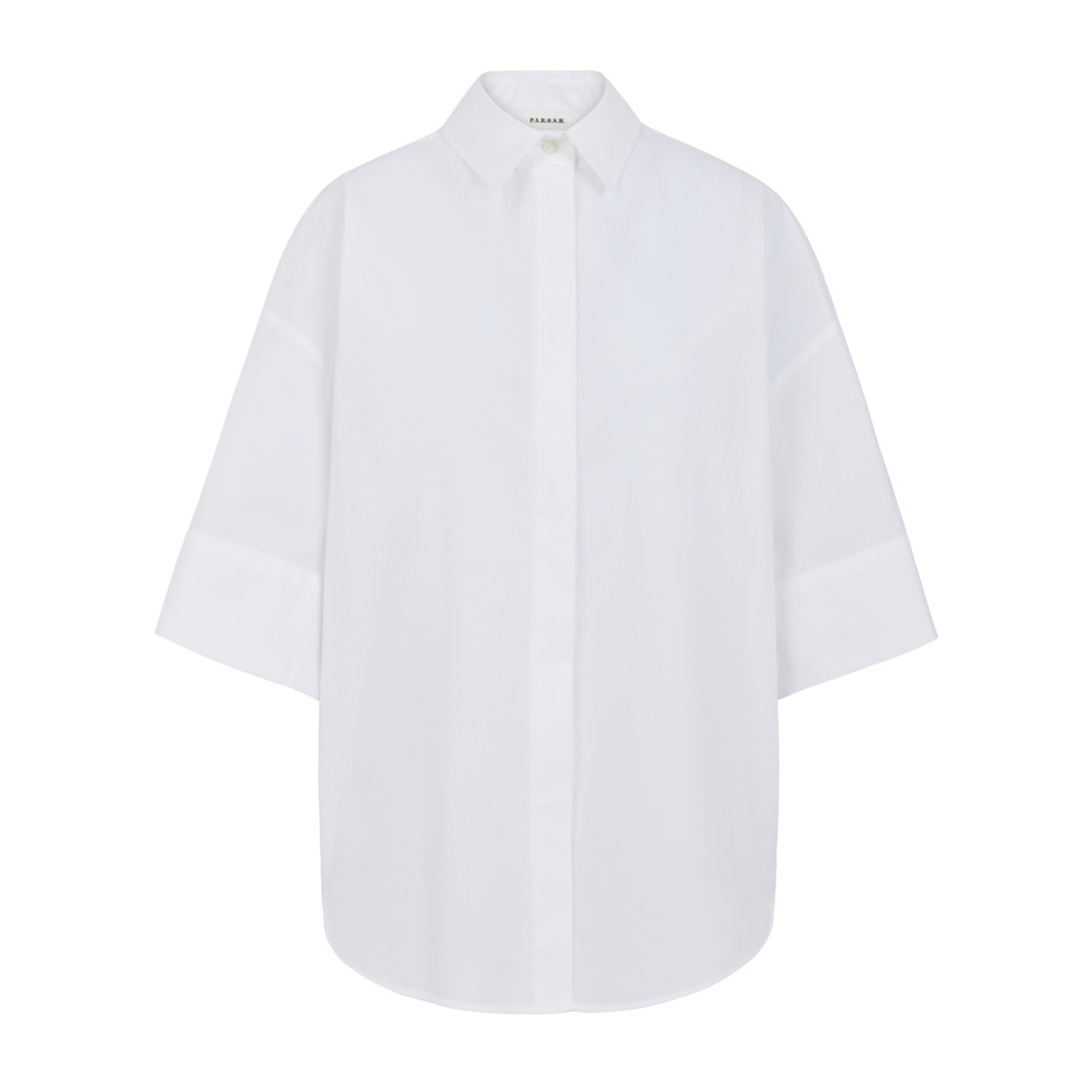 P.A.R.O.S.H. White Shirt. White shirt with classic collar, three quarter sleeves, front button fastening.