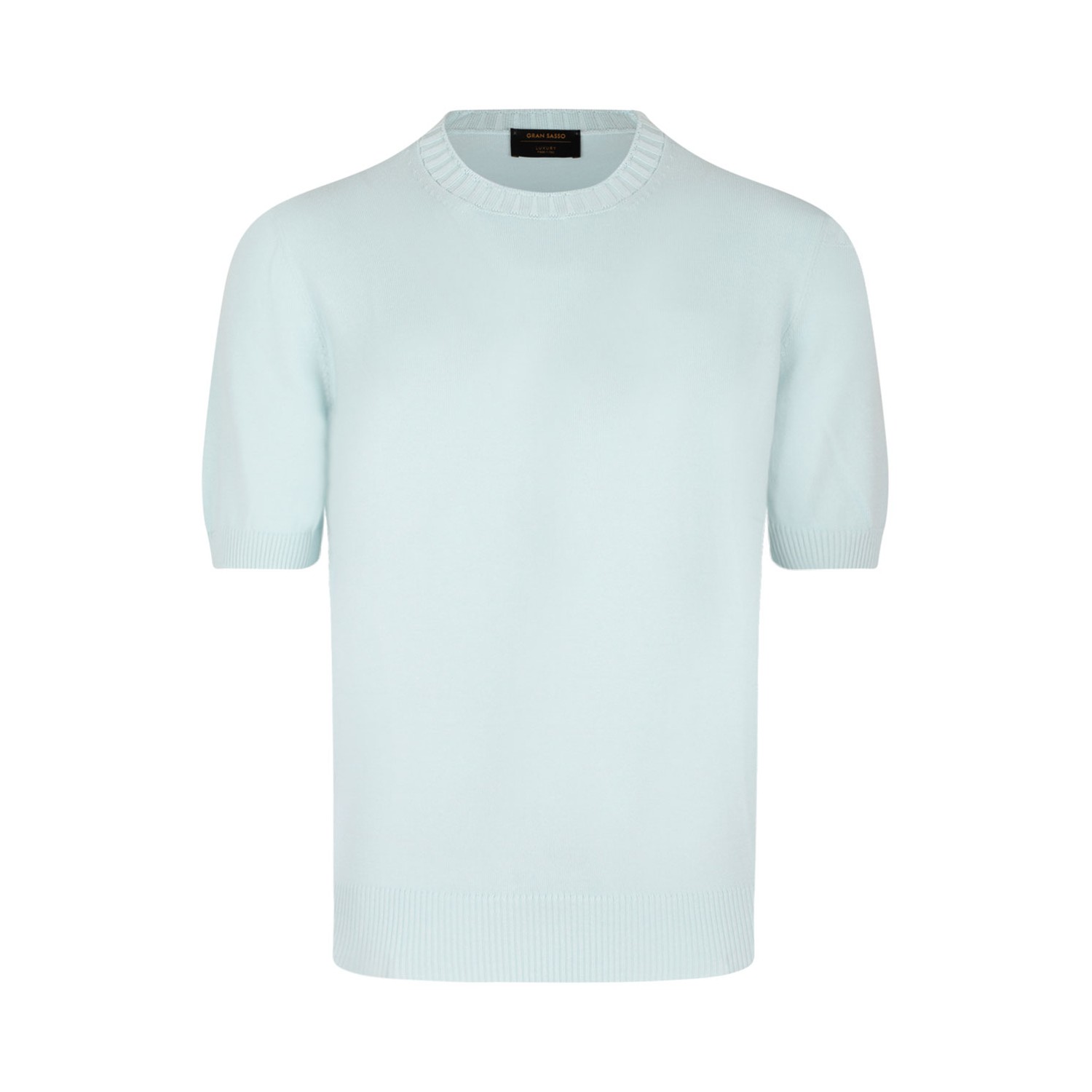 Gran Sasso Light Blue Knitwear T-Shirt. Light blue knitwear t-shirt with crew neck and short sleeves.